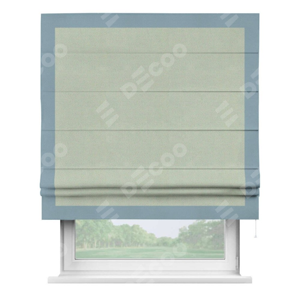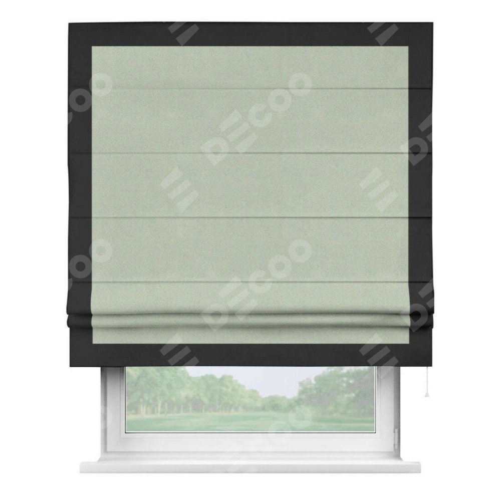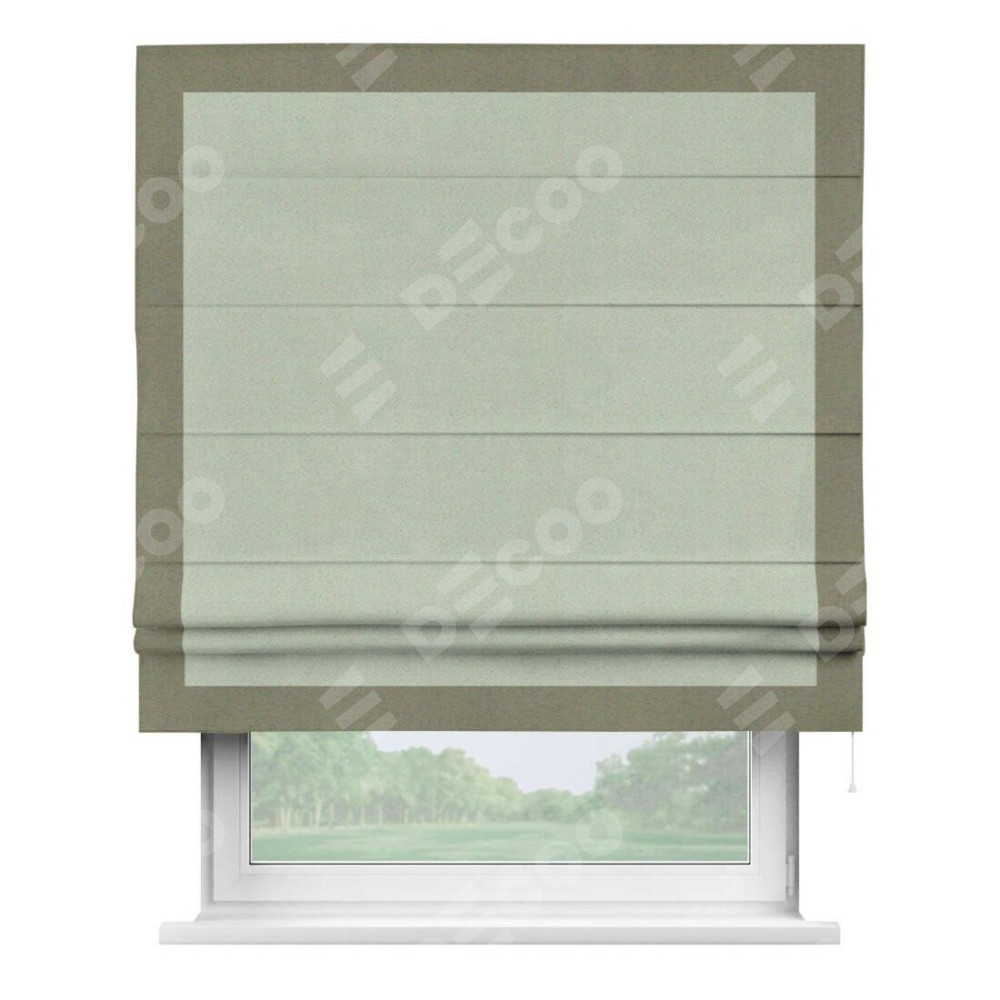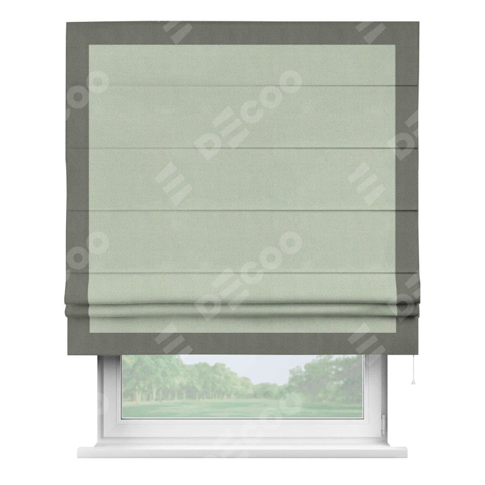Римская штора производителя «Cortin», используется для проёма, пошита из ткани блэкаут однотонный светло-серый, артикул ткани 29332−2. Отделка шторы кантом «Чесс», ткань для канта используется из блэкаута однотонного разной расцветки на выбор. Имеет универсальный механизм и подходит для монтажа: на потолок, на стену и в нишу.