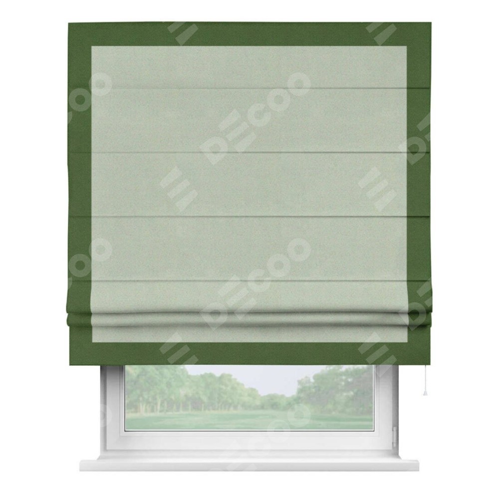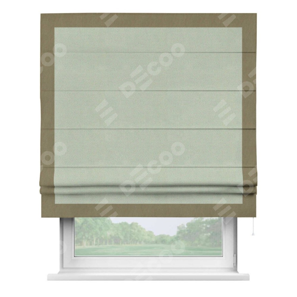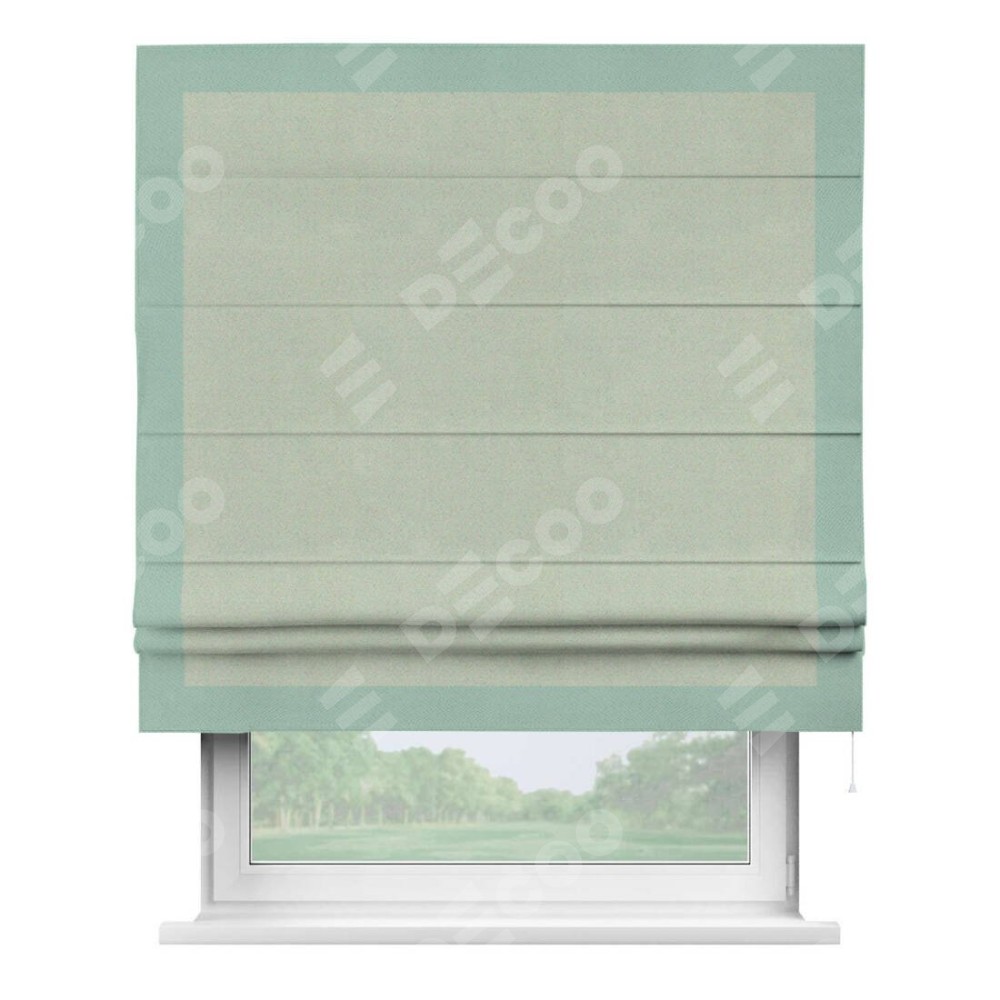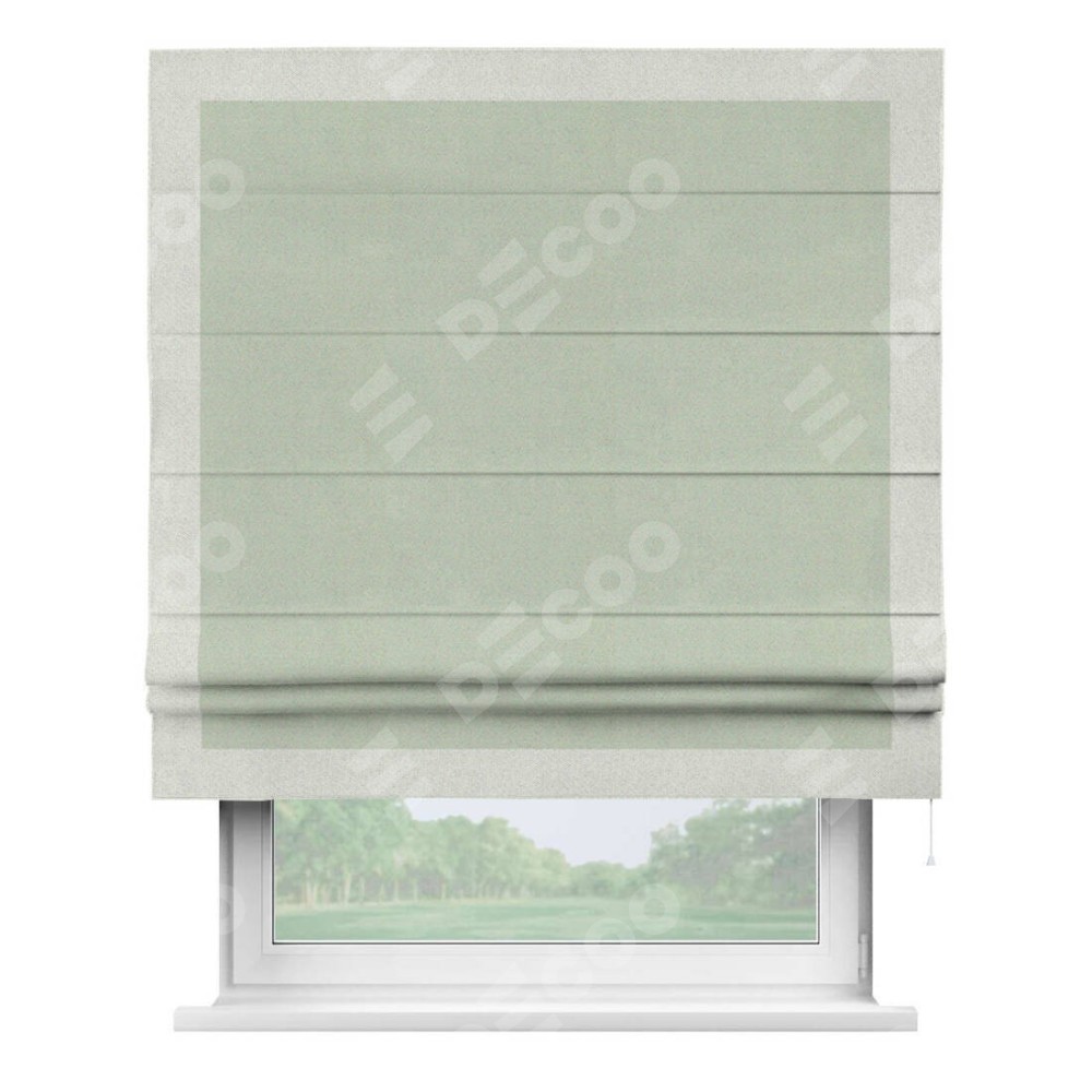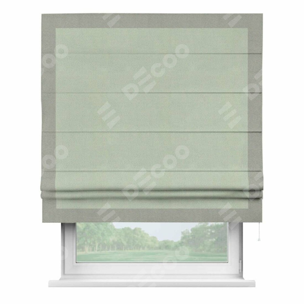 Римская штора производителя «Cortin», используется для проёма, пошита из ткани блэкаут однотонный светло-серый, артикул ткани 29332−2. Отделка шторы кантом «Чесс», ткань для канта используется из блэкаута однотонного разной расцветки на выбор. Имеет универсальный механизм и подходит для монтажа: на потолок, на стену и в нишу.