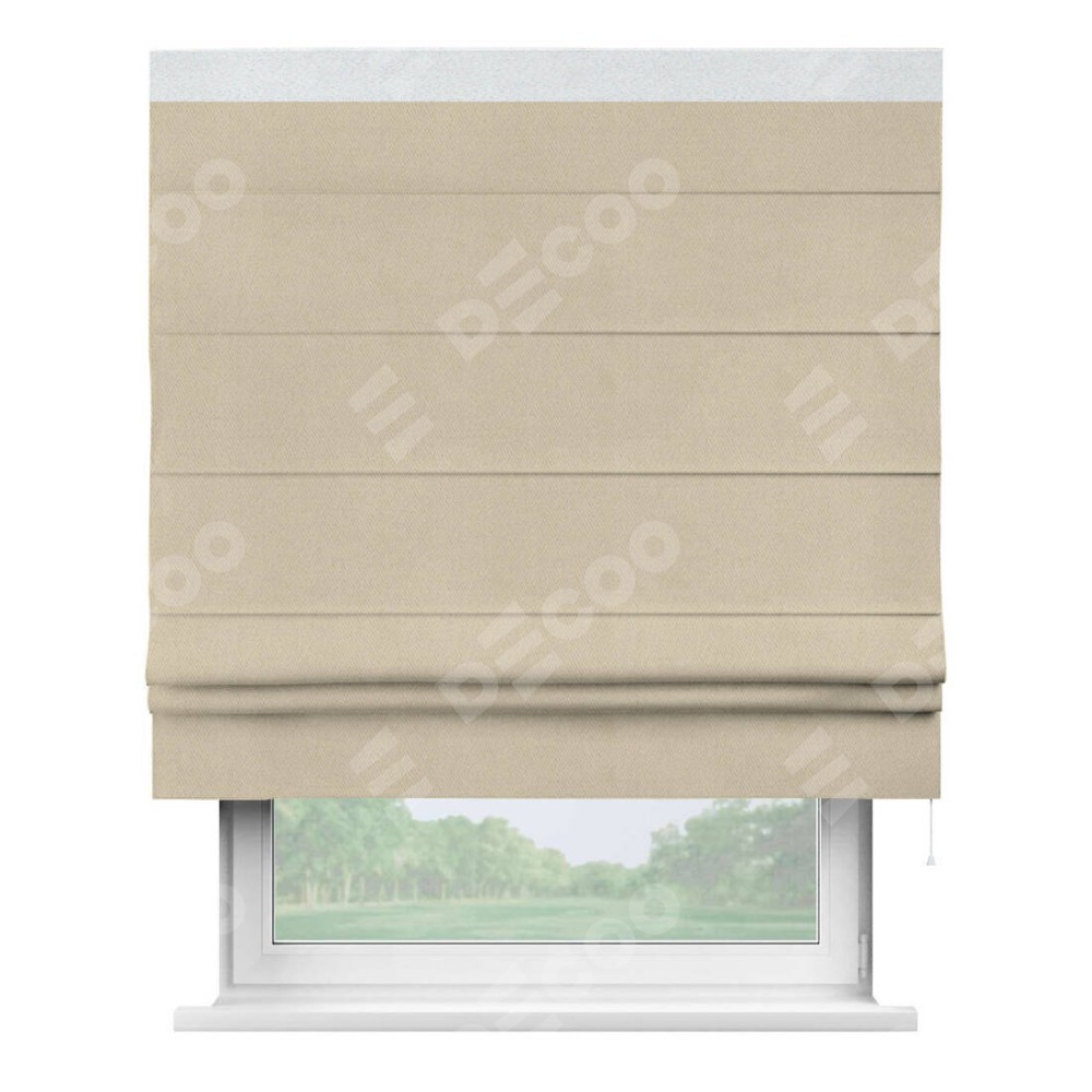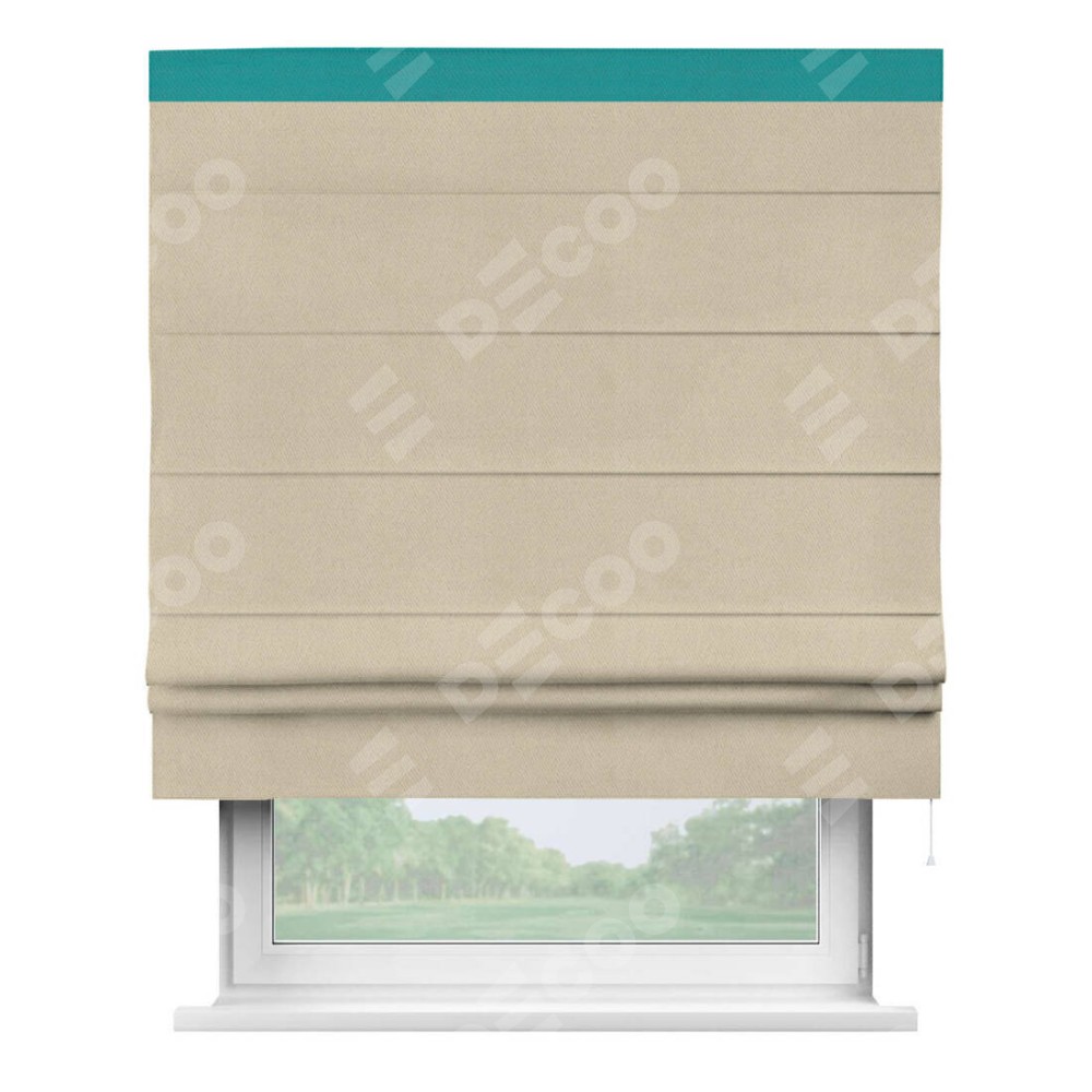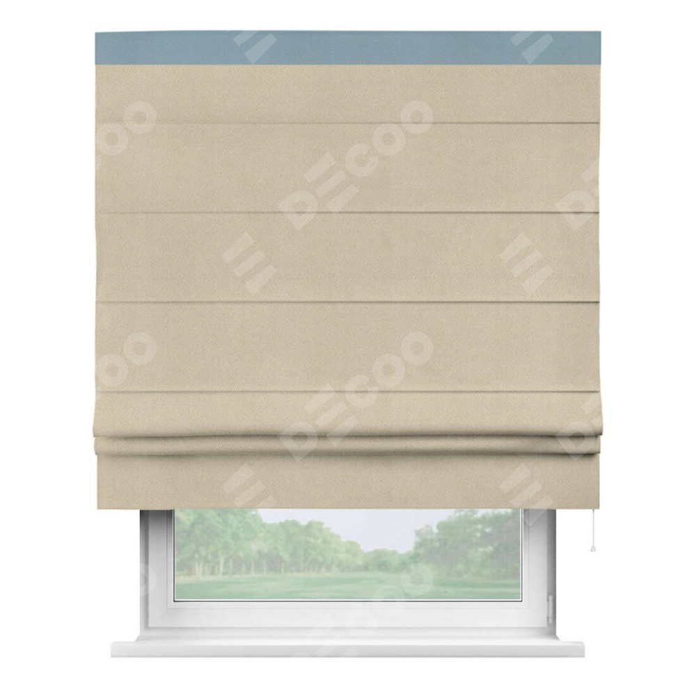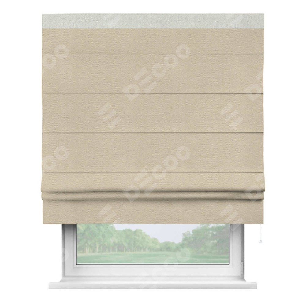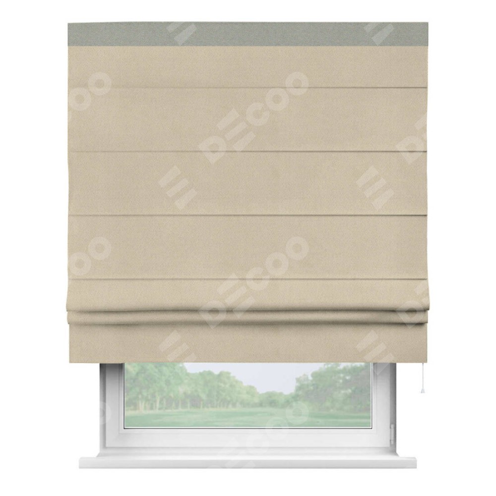 Римская штора производителя «Cortin», используется для проёма, пошита из ткани блэкаут однотонный кофейно-бежевый, артикул ткани 12095−1. Отделка шторы кантом «Кинг», ткань для канта используется из блэкаута однотонного разной расцветки на выбор. Имеет универсальный механизм и подходит для монтажа: на потолок, на стену и в нишу.