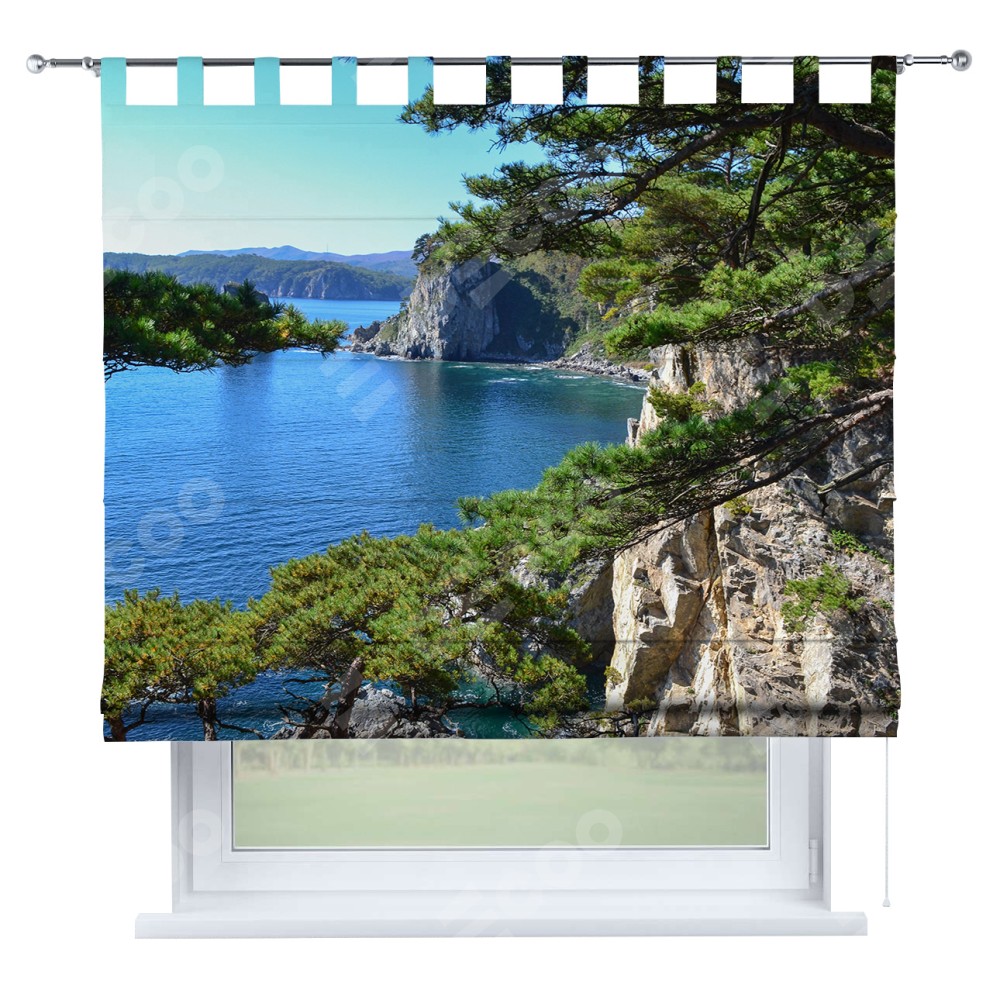 Римская штора на петлях «Море и сосны»