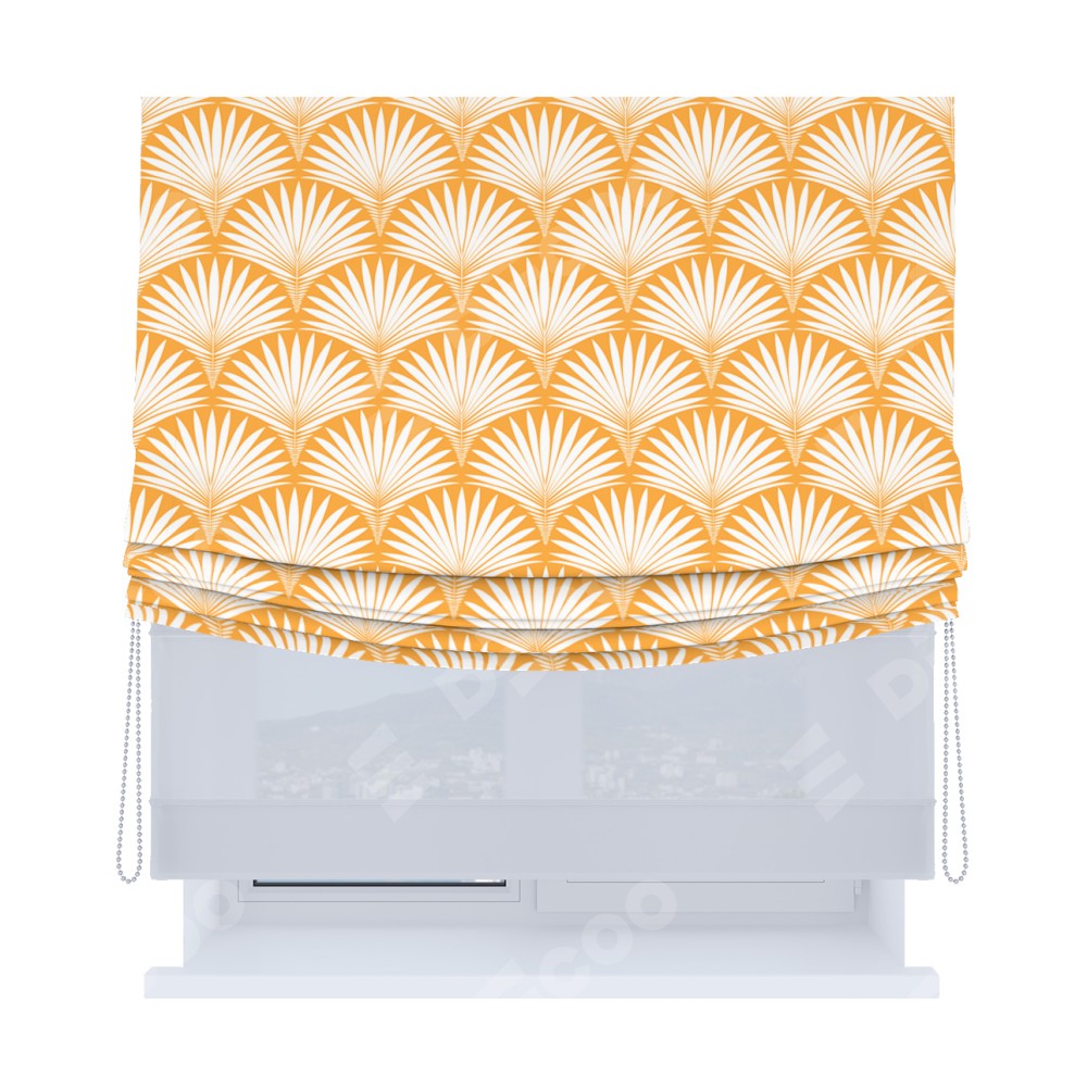 Римская штора «Кортин», день-ночь с мягкими складками, «Арт-деко листья желтый»
