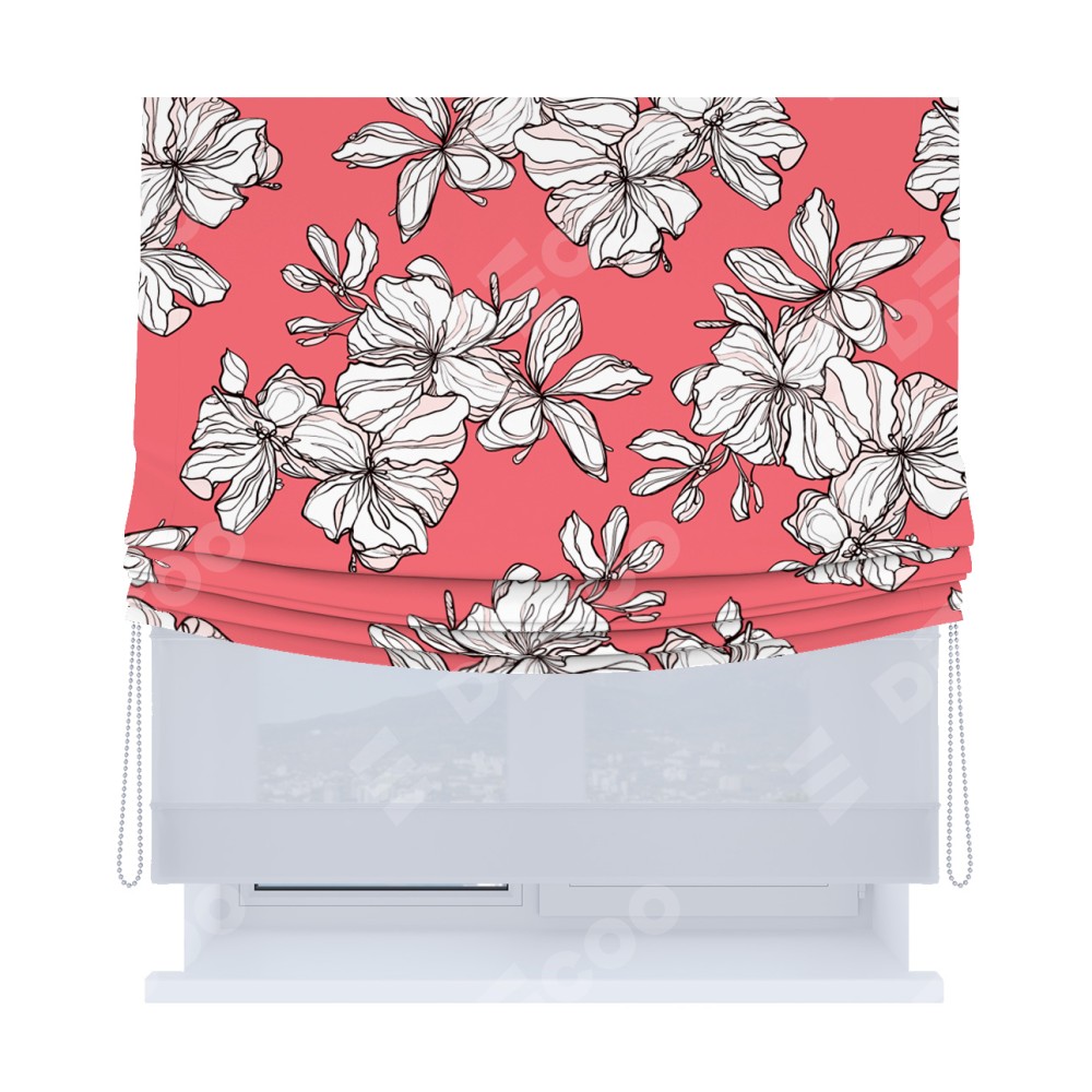 Римская штора «Кортин», день-ночь с мягкими складками, «Белые цветы»
