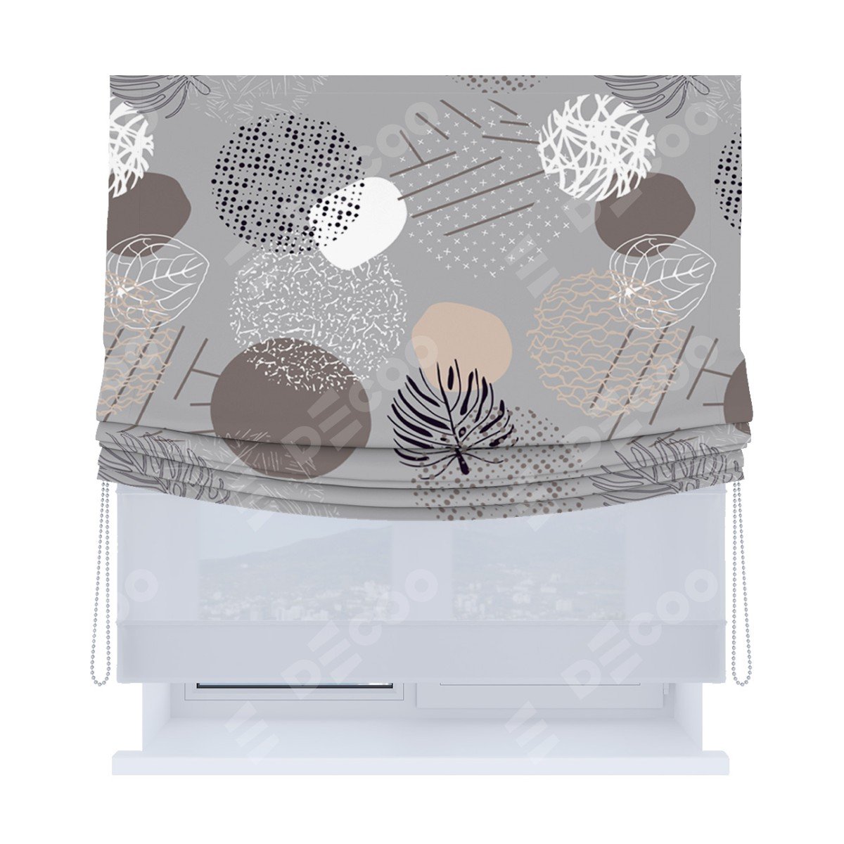 Римская штора «Кортин», день-ночь с мягкими складками, «Ботаника абстракция»