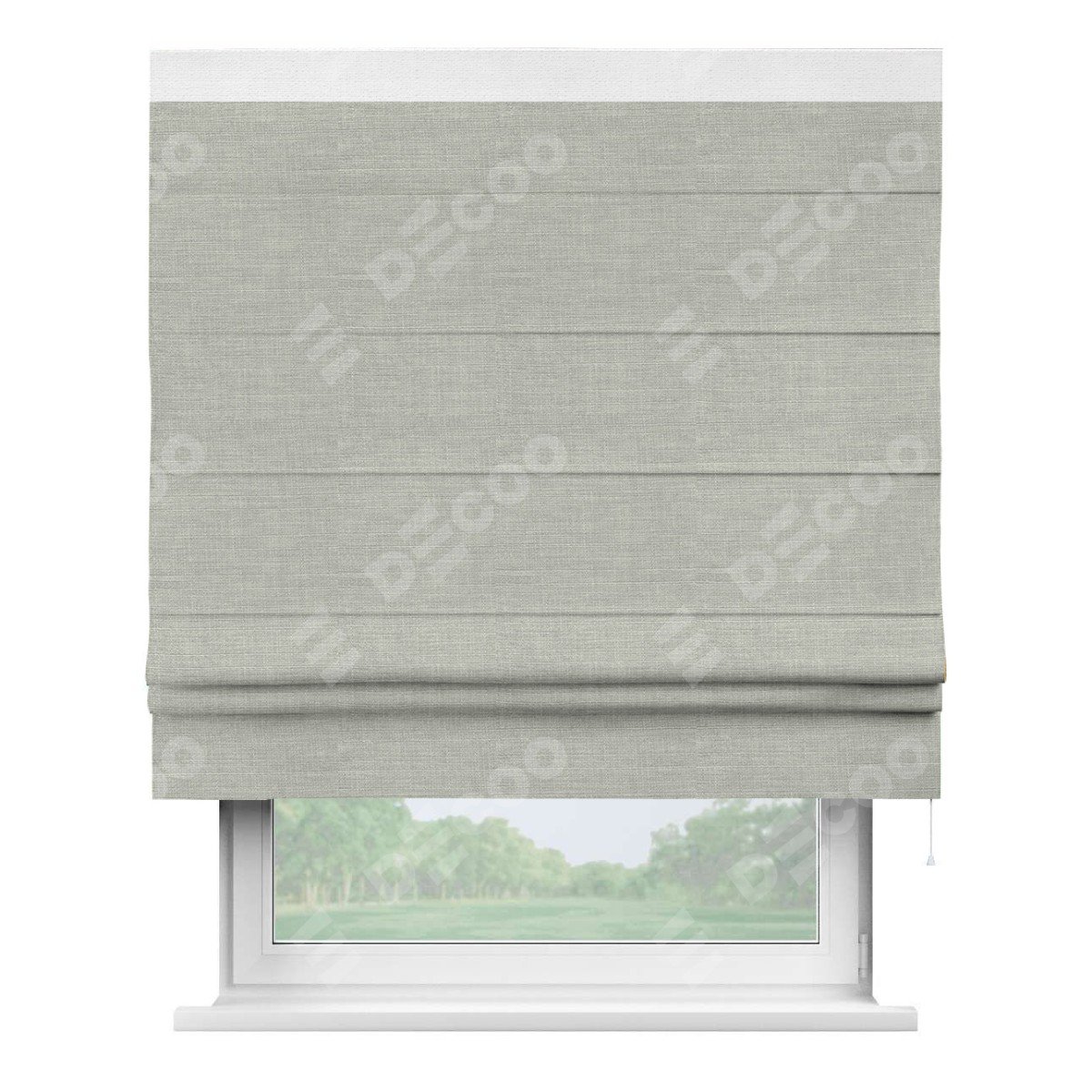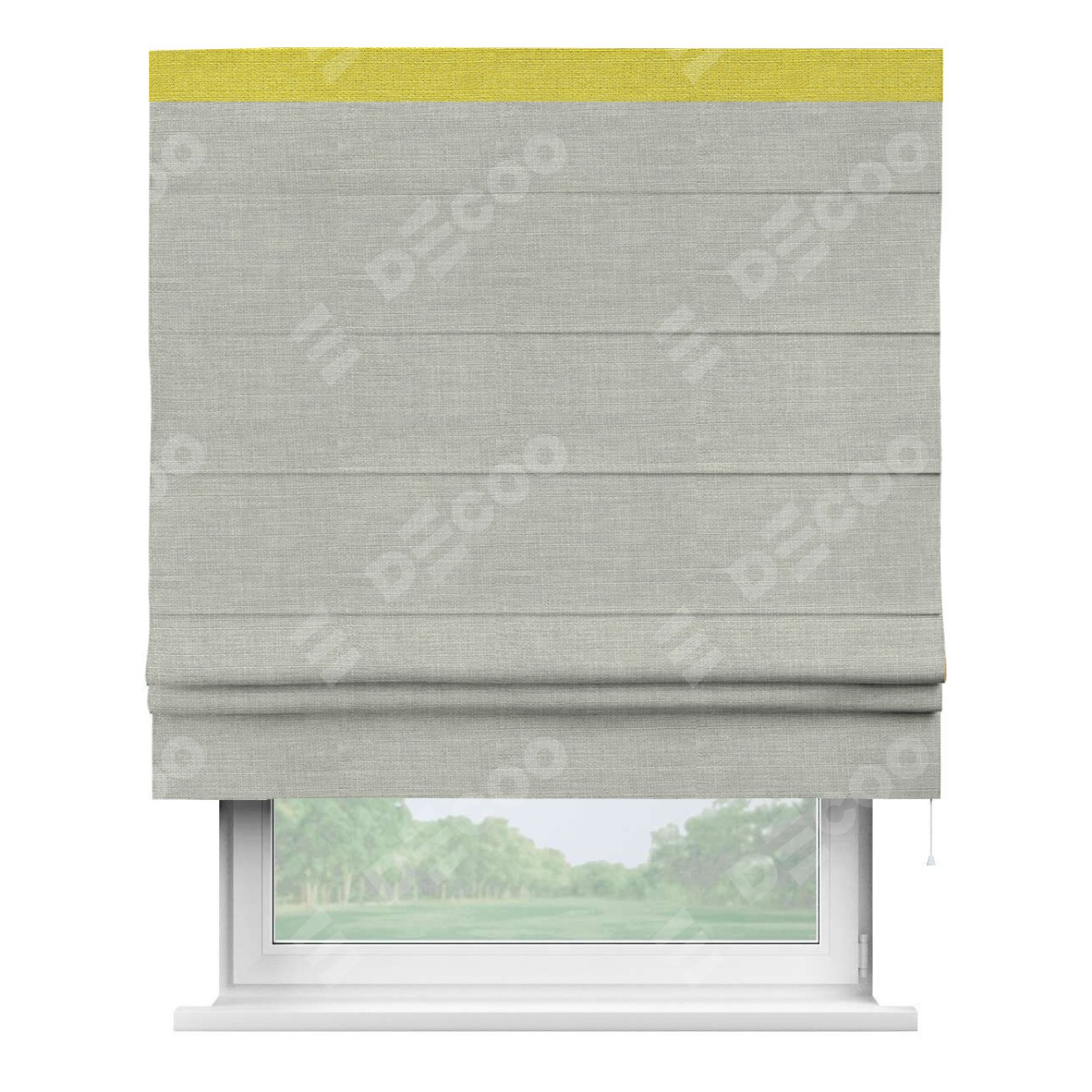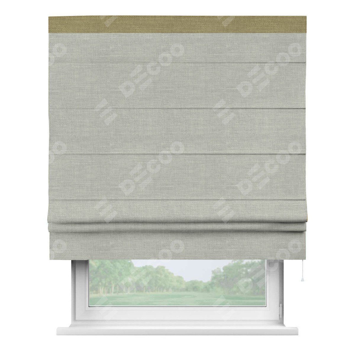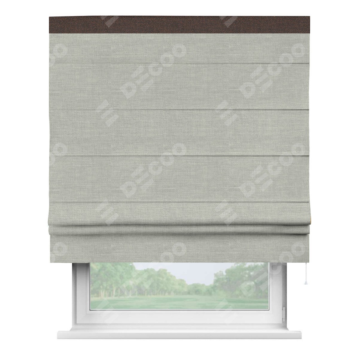 Римская штора производителя «Cortin», используется для проёма, пошита из ткани лён серый, артикул 7440. Отделка шторы кантом «Кинг», ткань для канта используется из льна разной расцветки на выбор. Имеет универсальный механизм и подходит для монтажа: на потолок, на стену и в нишу.