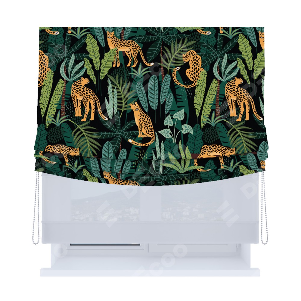Римская штора «Кортин», день-ночь с мягкими складками, «Леопарды в джунглях»