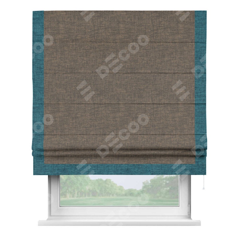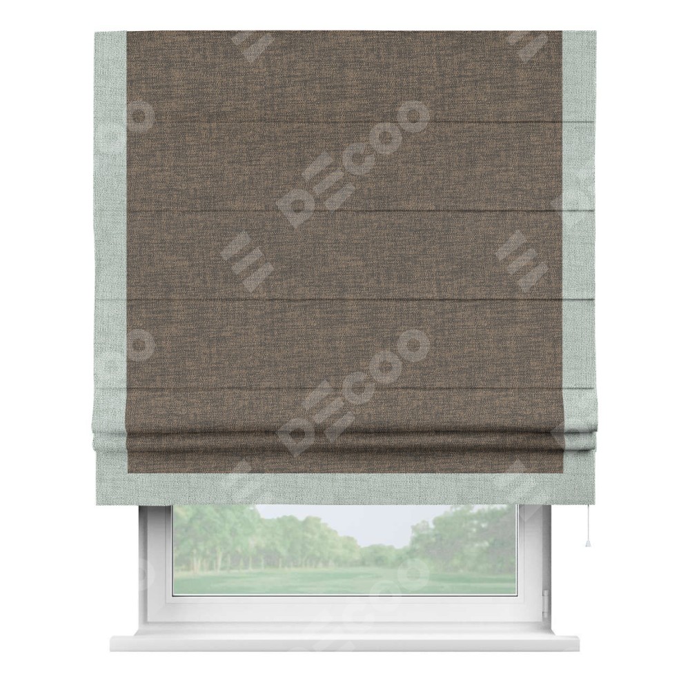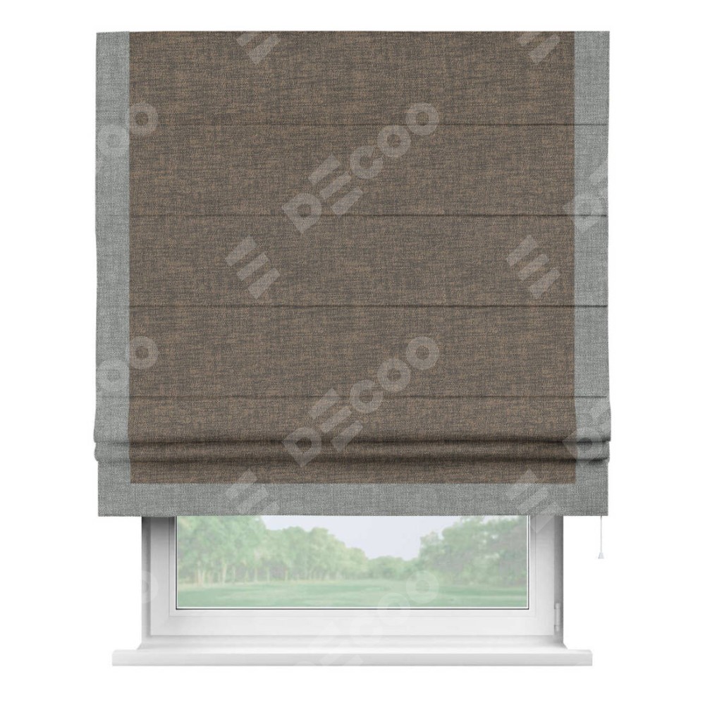 Римская штора «Кортин» с кантом Виктория, для проема, ткань рогожка димаут, коричневый