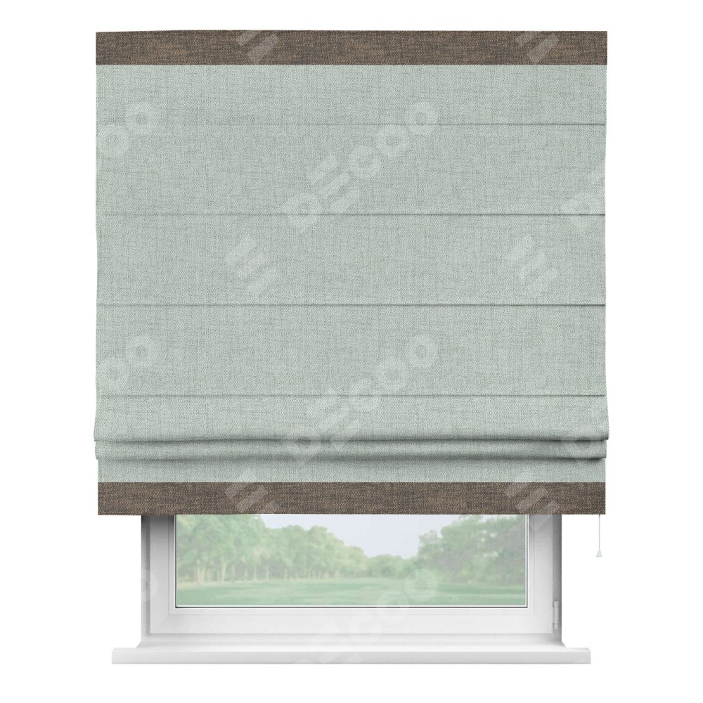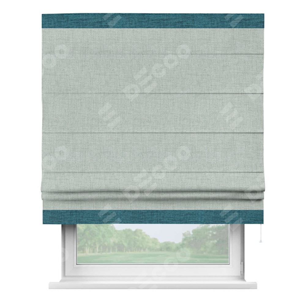 Римская штора производителя «Cortin», используется для проёма, пошита из ткани рогожка димаут серый, артикул 80426. Отделка шторы кантом «Горизонт», ткань для канта используется из рогожки димаут разной расцветки на выбор. Имеет универсальный механизм и подходит для монтажа: на потолок, на стену и в нишу.