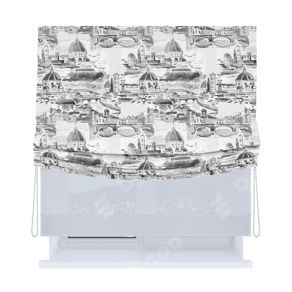 Римская штора «Кортин», день-ночь с мягкими складками, «Старый город»