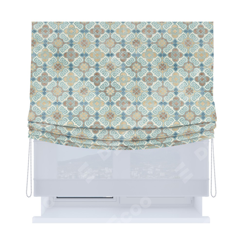 Римская штора день-ночь производителя «Cortin», используется для проёма, пошита из двух полотен, с лицевой блэкаут с нанесением сублимационной печати «Фарида», вторая ткань тюль (по стандарту комплектуется тюль белого цвета артикул V-01). Имеет универсальный механизм и подходит для монтажа: на потолок, на стену и в нишу. Удобное управление каждой шторой отдельно.