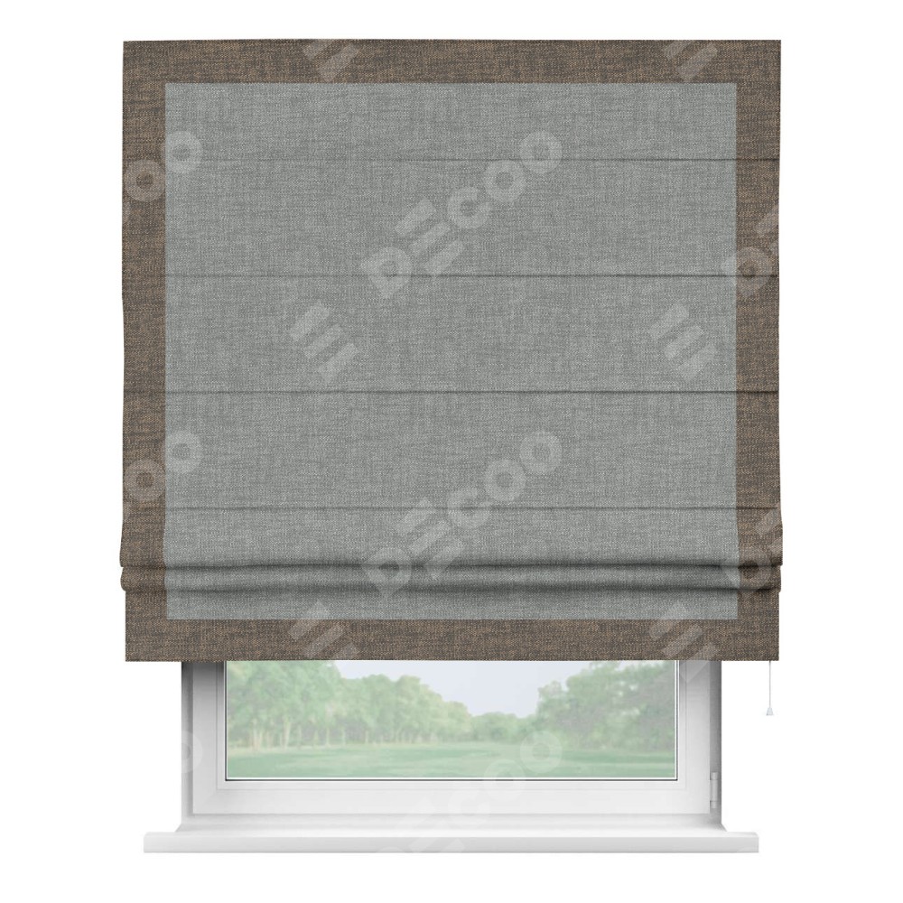 Римская штора «Кортин» с кантом Чесс, для проема, ткань рогожка димаут, тёмно-серый