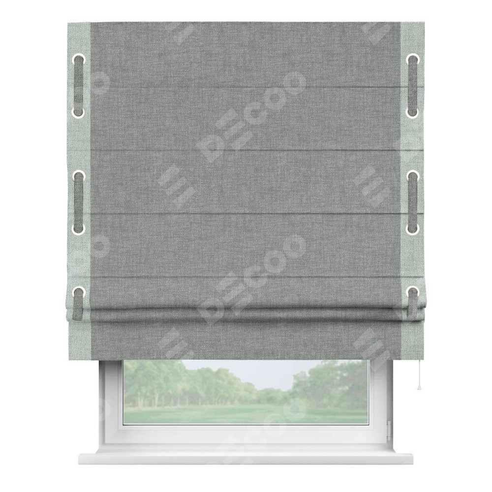 Римская штора «Кортин» с кантом Стрим Дуо (люверсы с пояском), для проема, ткань рогожка димаут, тёмно-серый