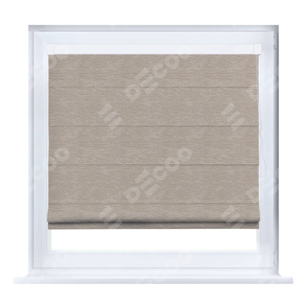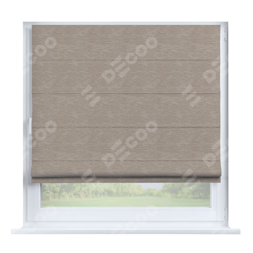 Римская штора производителя «Cortin», устанавливается на створку окна, пошита из ткани софт однотонный тёмно-бежевый, артикул 1640. Штора шьётся по индивидуальным размерам, для данного типа римской шторы возможная ширина от 35 до 150 см., высота до 250 см.