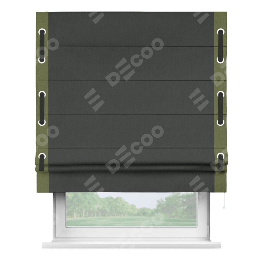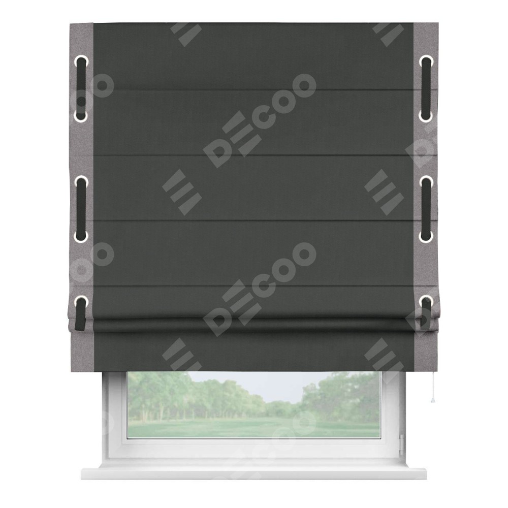 Римская штора «Кортин» с кантом Стрим Дуо (люверсы с пояском), для проема, лён блэкаут графит