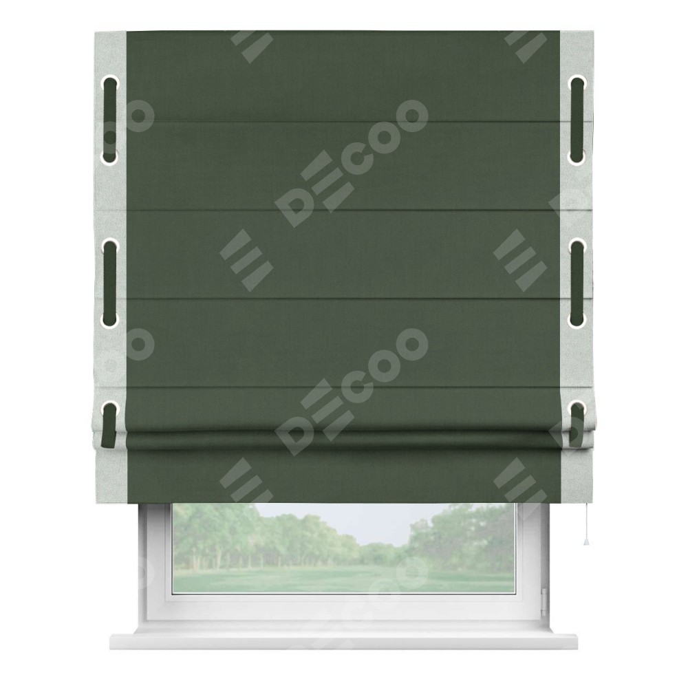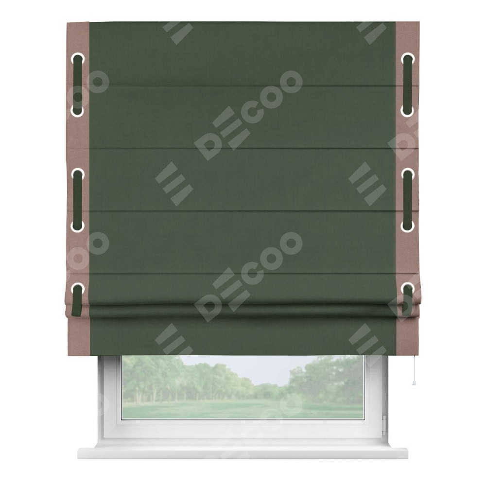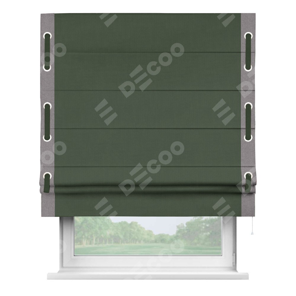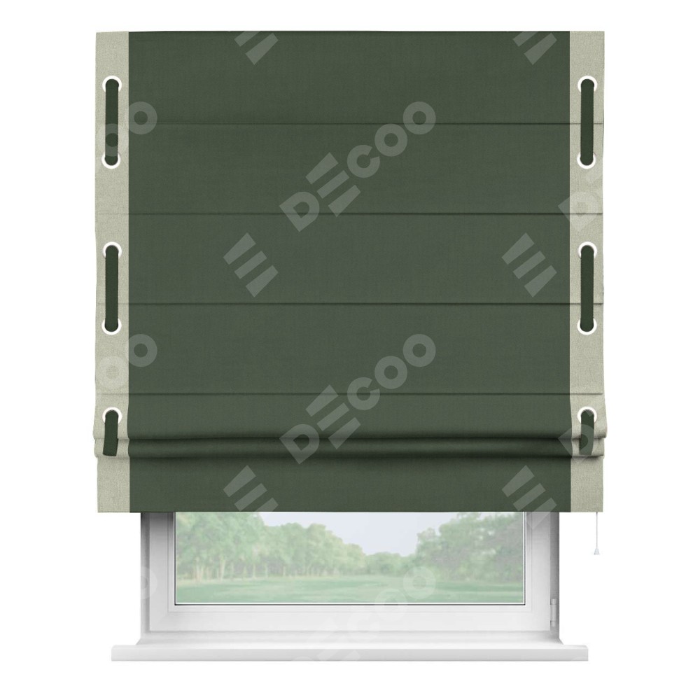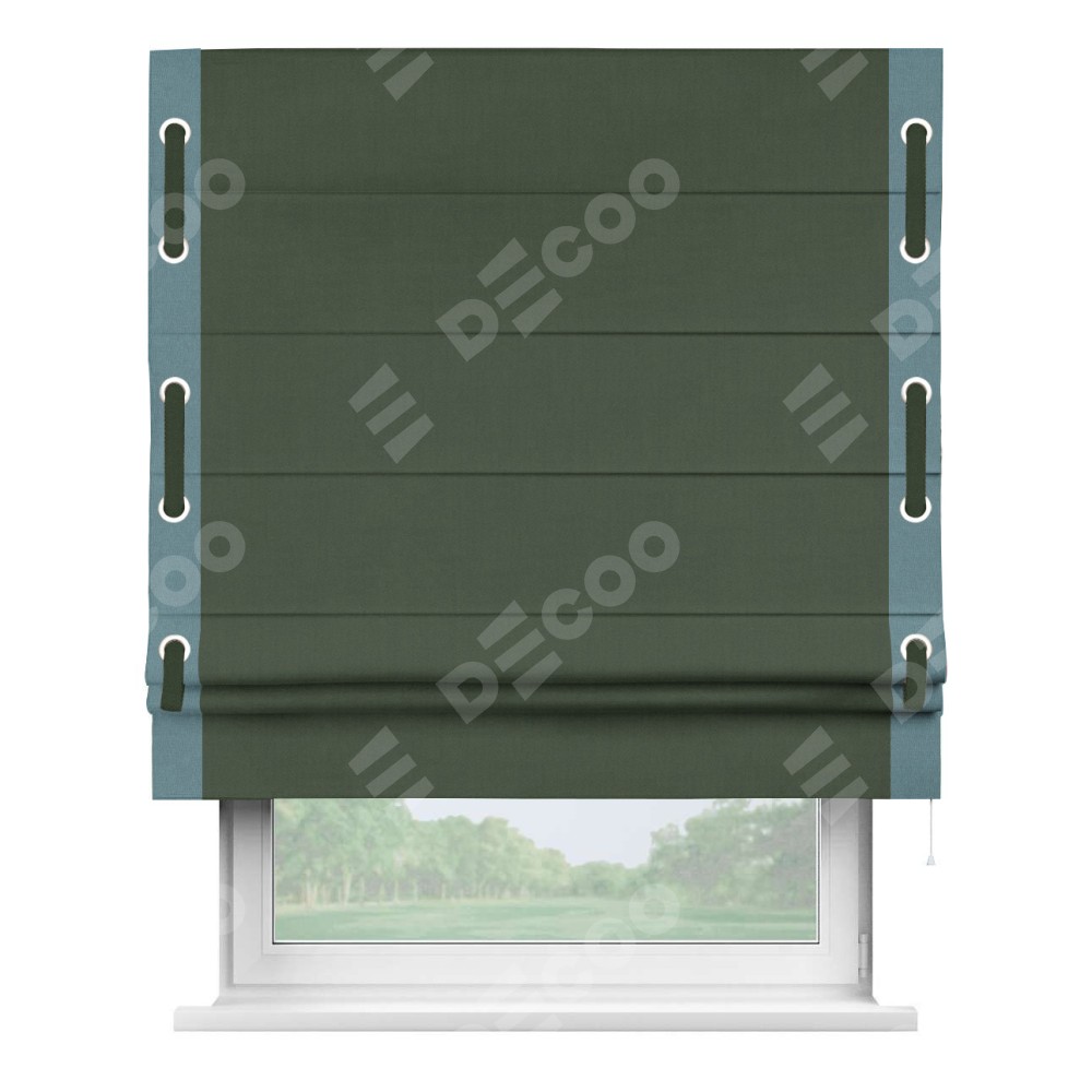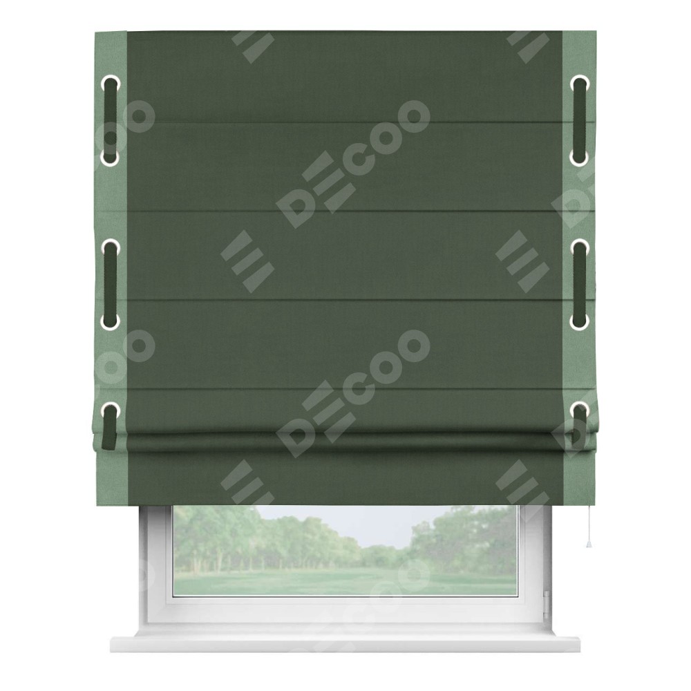 Римская штора «Кортин» с кантом Стрим Дуо (люверсы с пояском), для проема, лён блэкаут зелёный