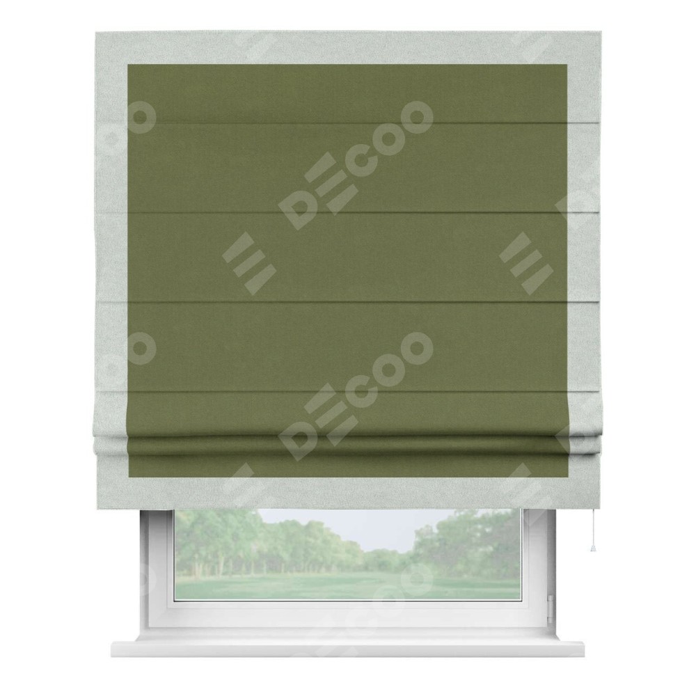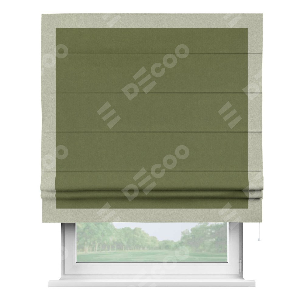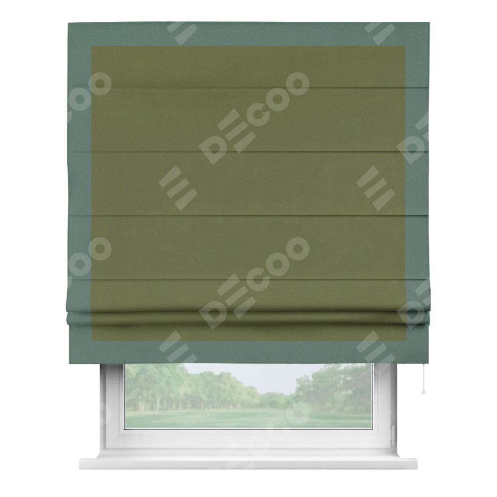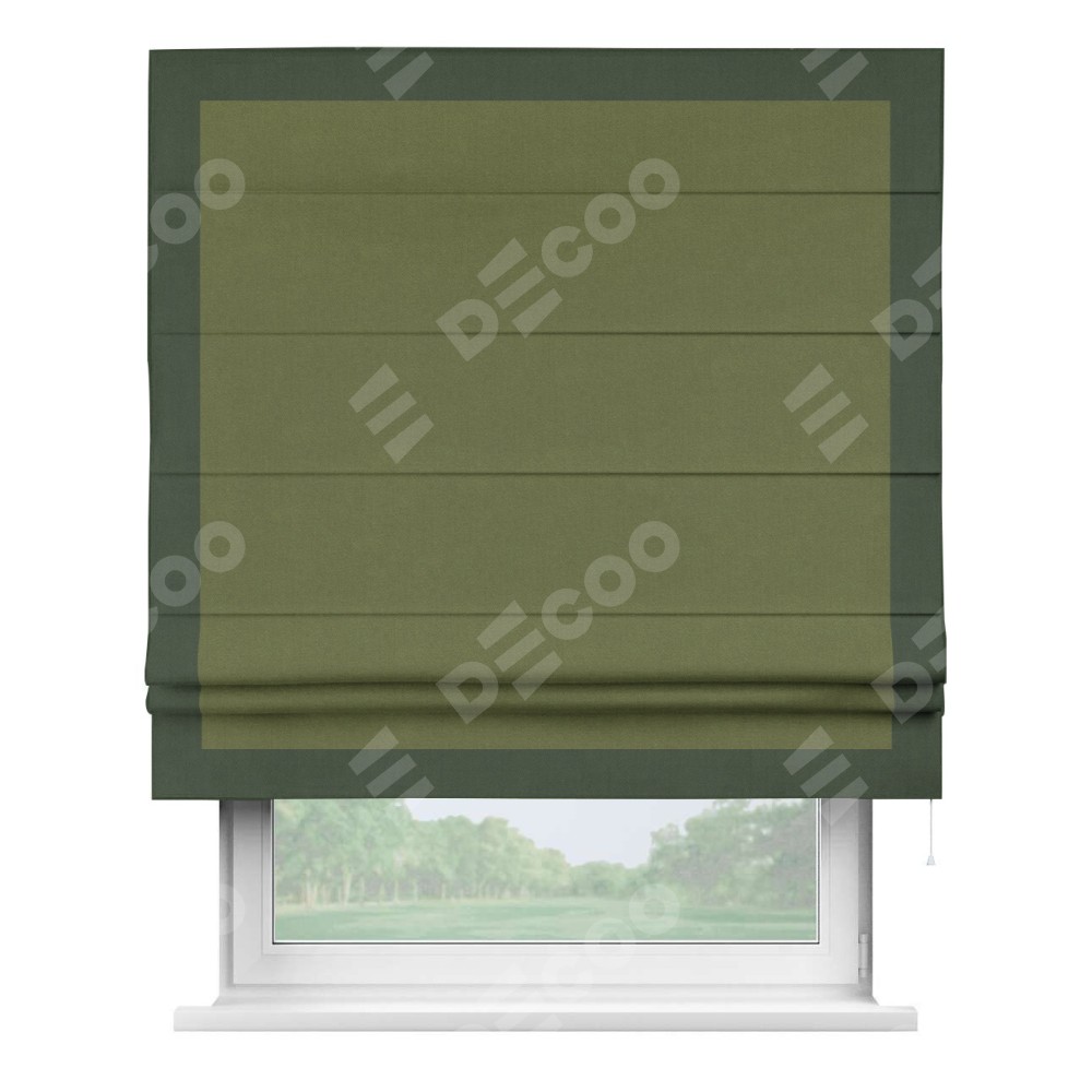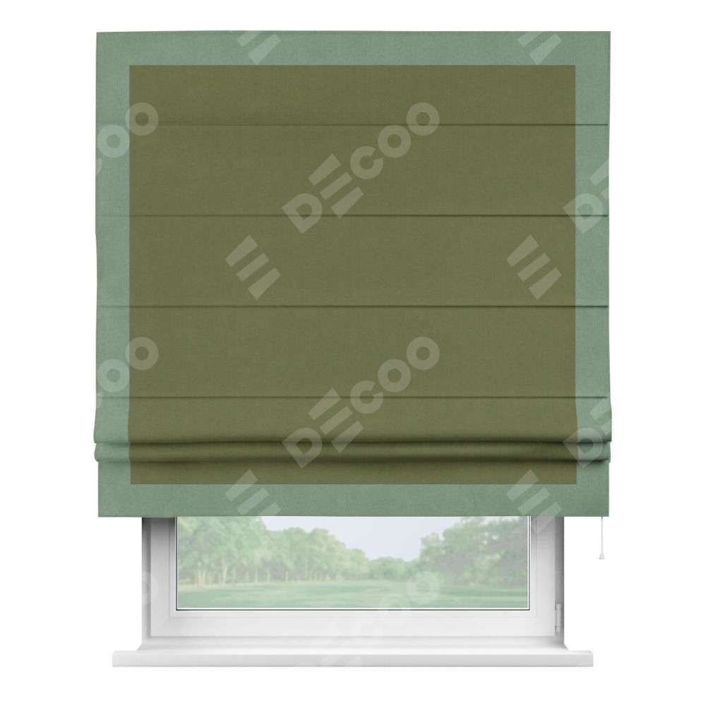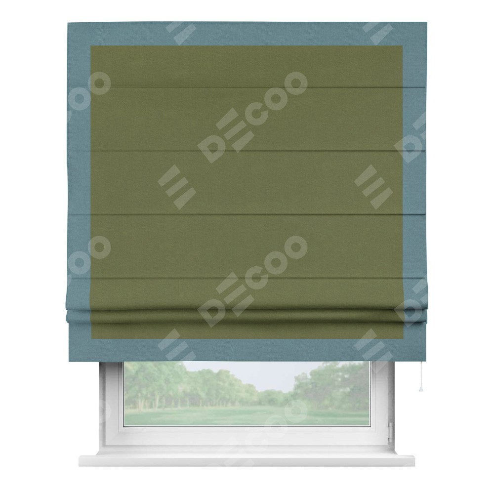 Римская штора «Кортин» с кантом Чесс, для проема, лён блэкаут оливковый