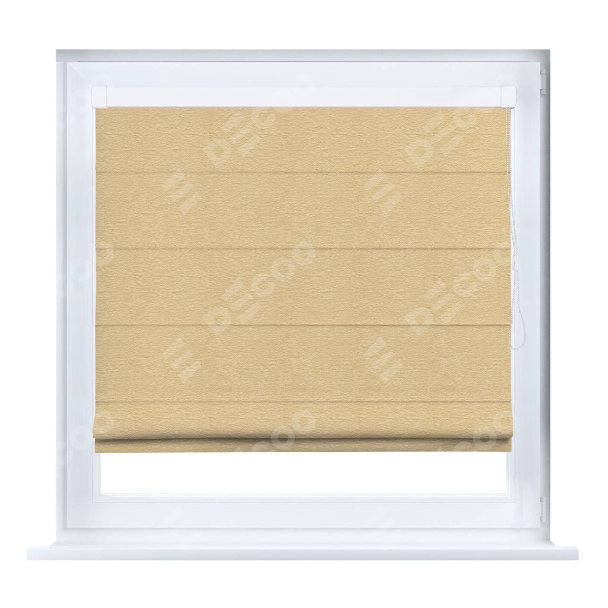 Римская штора кассетного типа, производителя «Cortin», устанавливается только на пластиковые окна и прилегает к стеклопакету, пошита из ткани софт однотонный бежевый, артикул 4202 05.