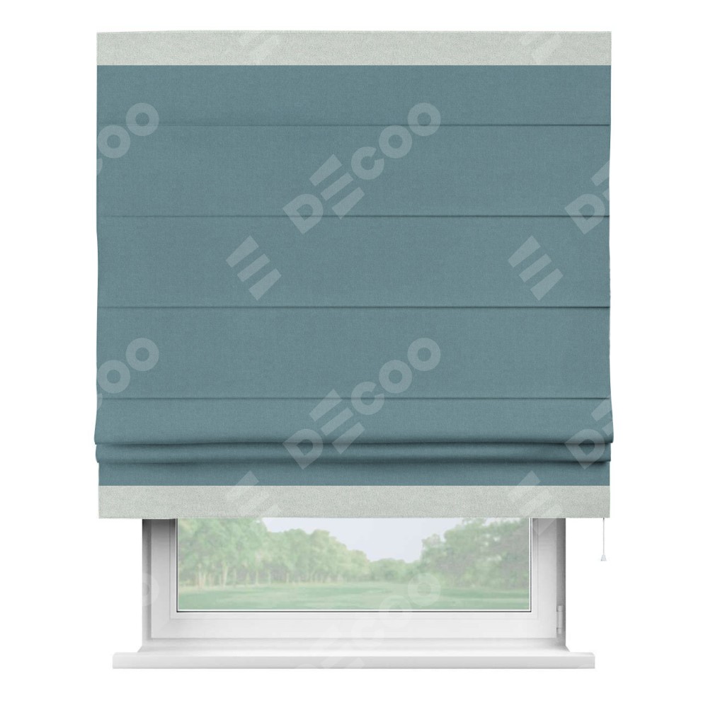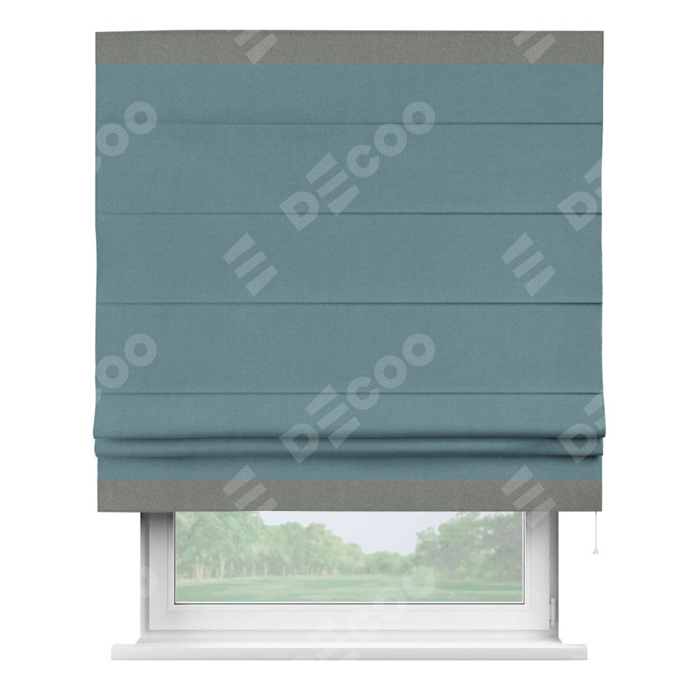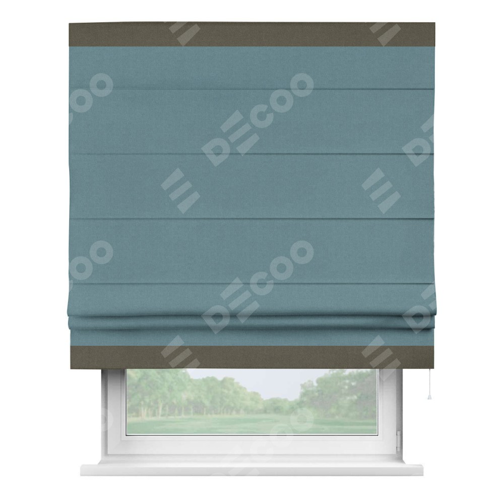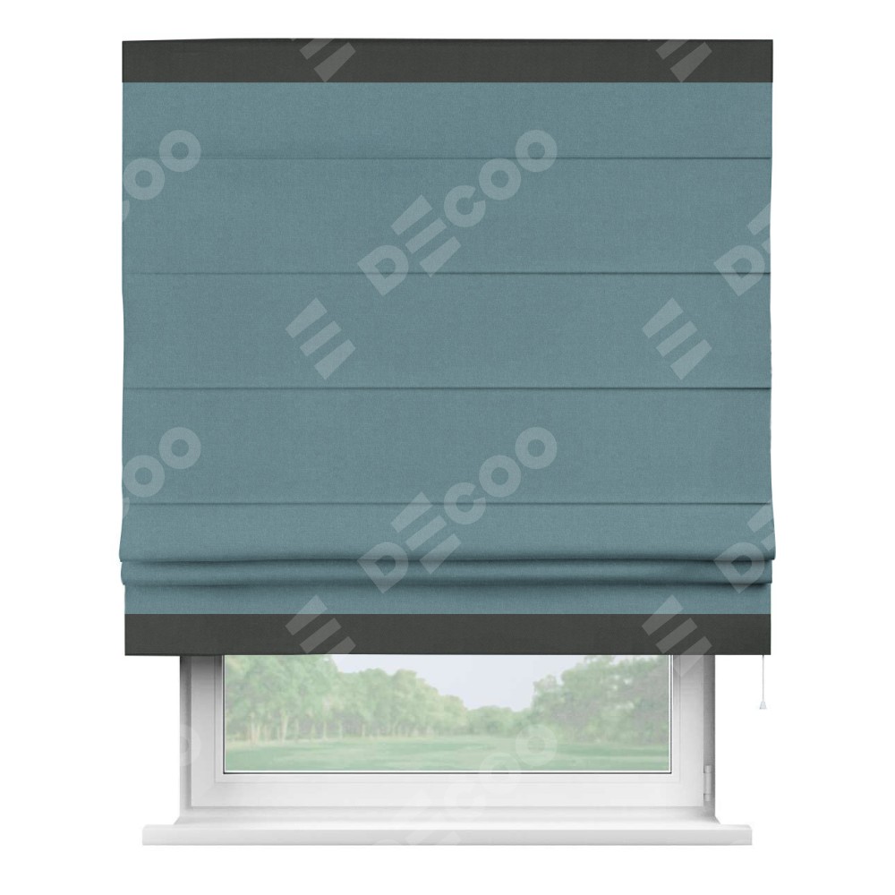 Римская штора «Кортин» с кантом Горизонт, для проема, лён блэкаут синий