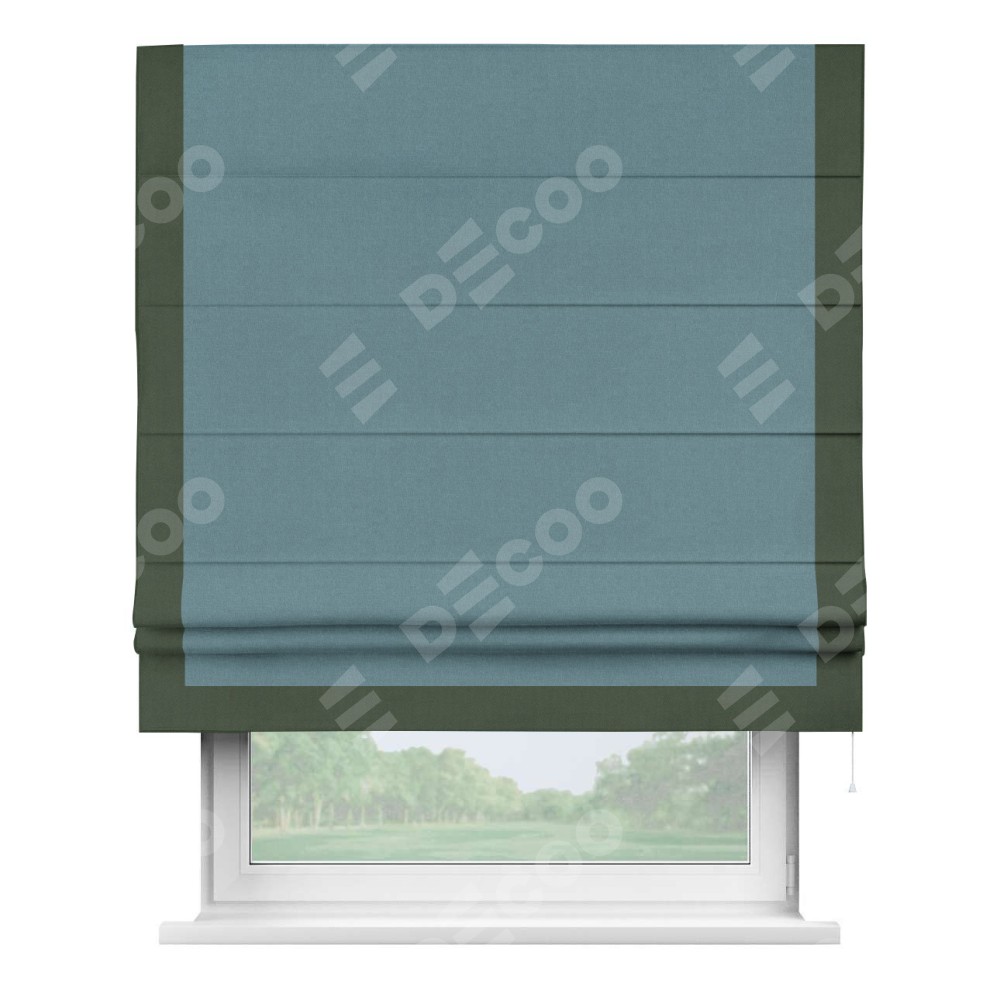 Римская штора «Кортин» с кантом Виктория, для проема, лён блэкаут синий