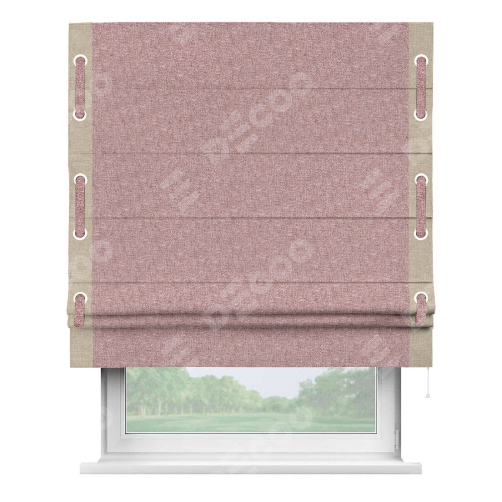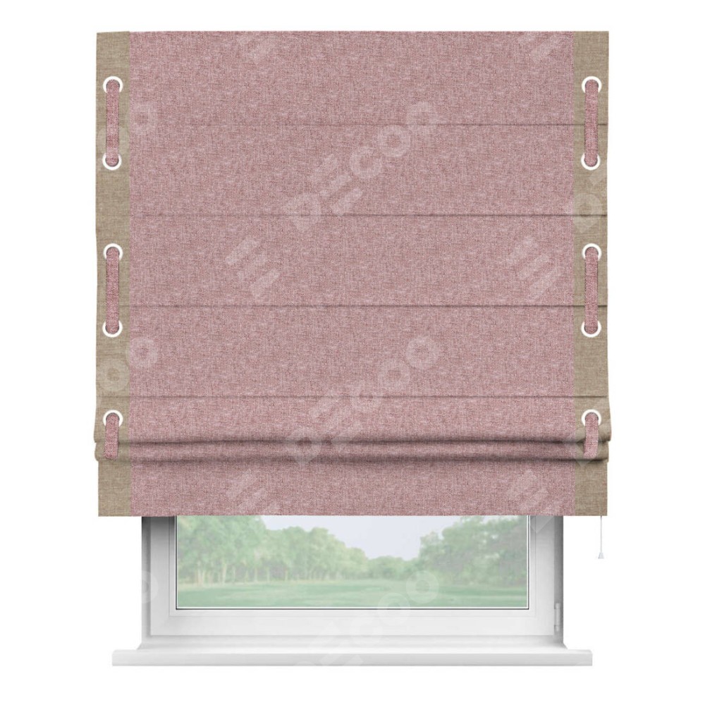 Римская штора «Кортин» с кантом Стрим Дуо (люверсы с пояском), для проема, ткань лён кашемир розовая пудра