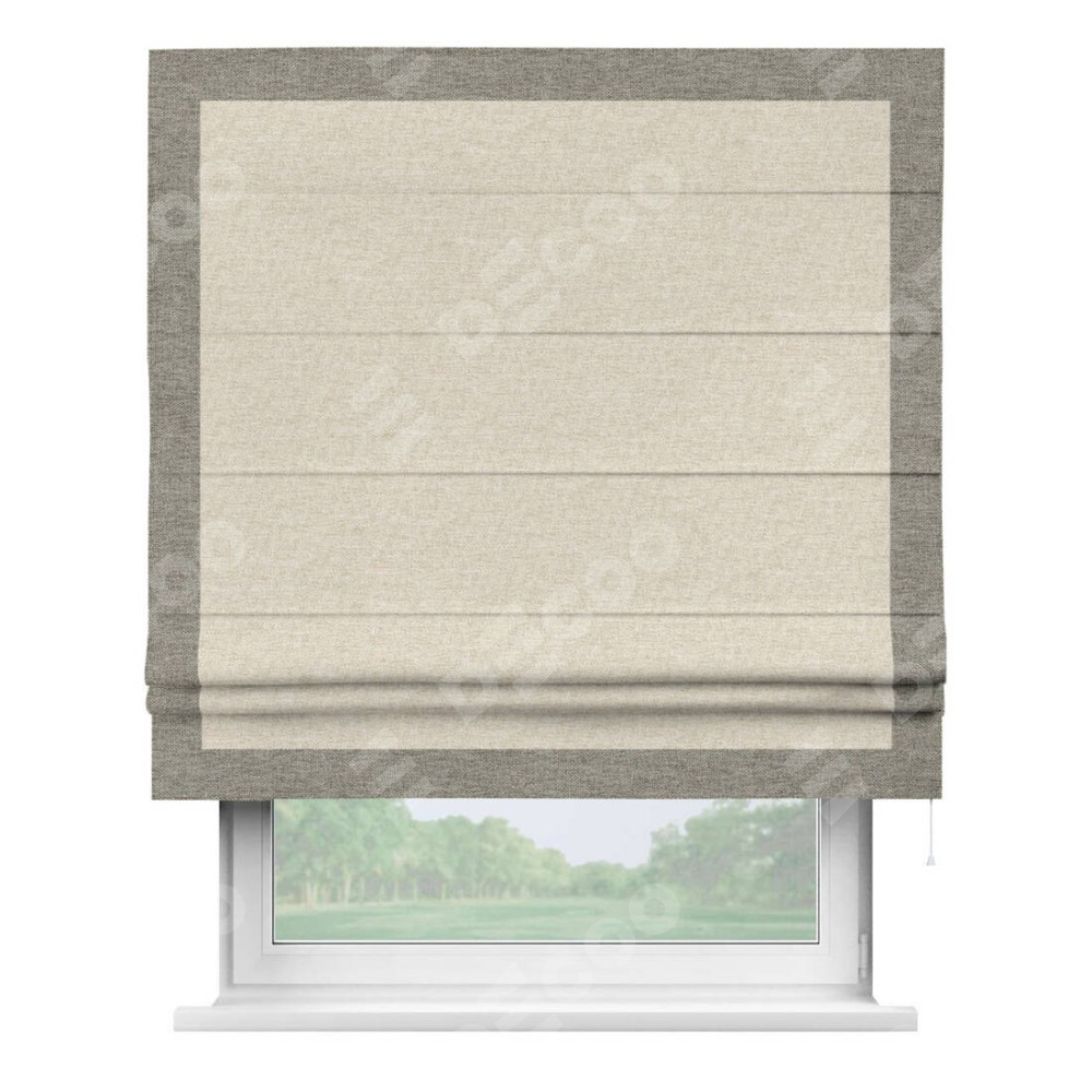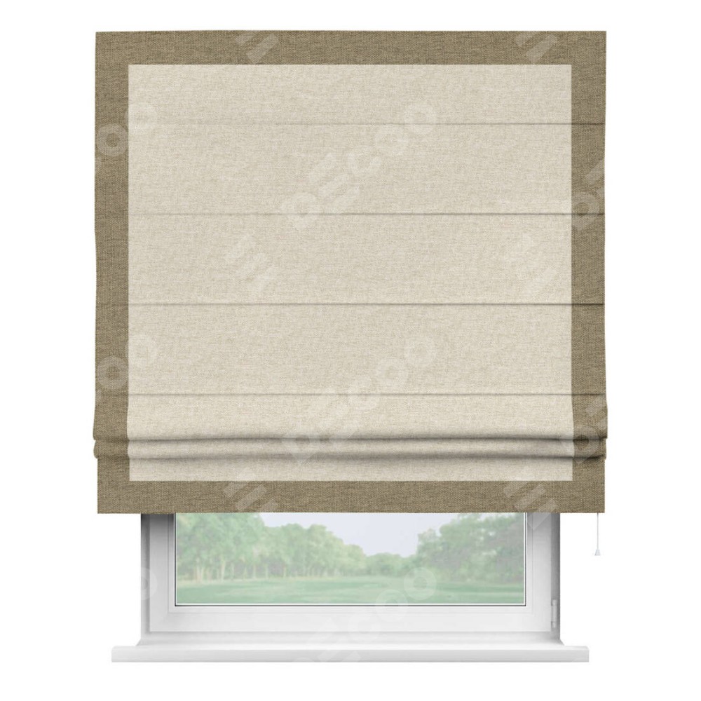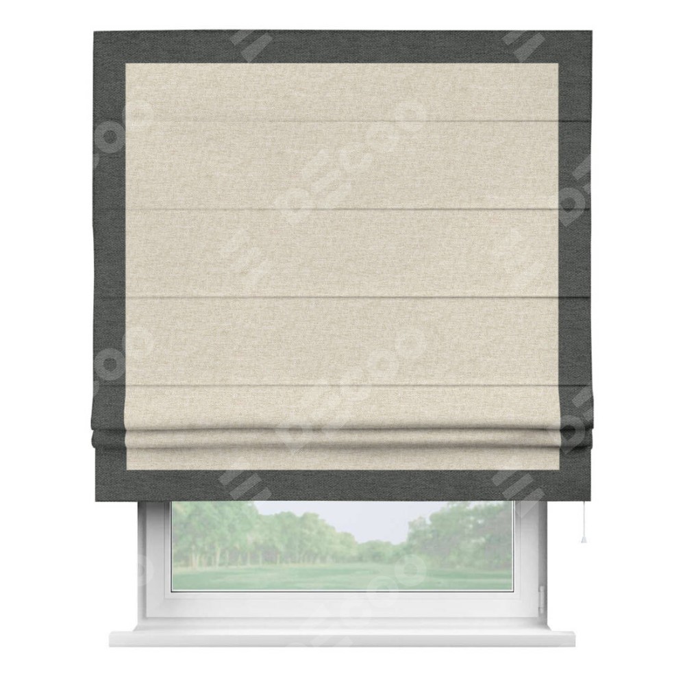 Римская штора производителя «Cortin», используется для проёма, пошита из ткани стиф димаут молочный, артикул 18082. Отделка шторы кантом «Чесс», ткань для канта используется из стифа разной расцветки на выбор. Имеет универсальный механизм и подходит для монтажа: на потолок, на стену и в нишу.