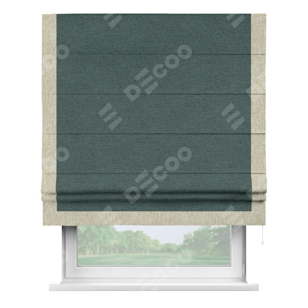 Римская штора «Кортин» с кантом Виктория, для проема, ткань стиф димаут сине-зелёный