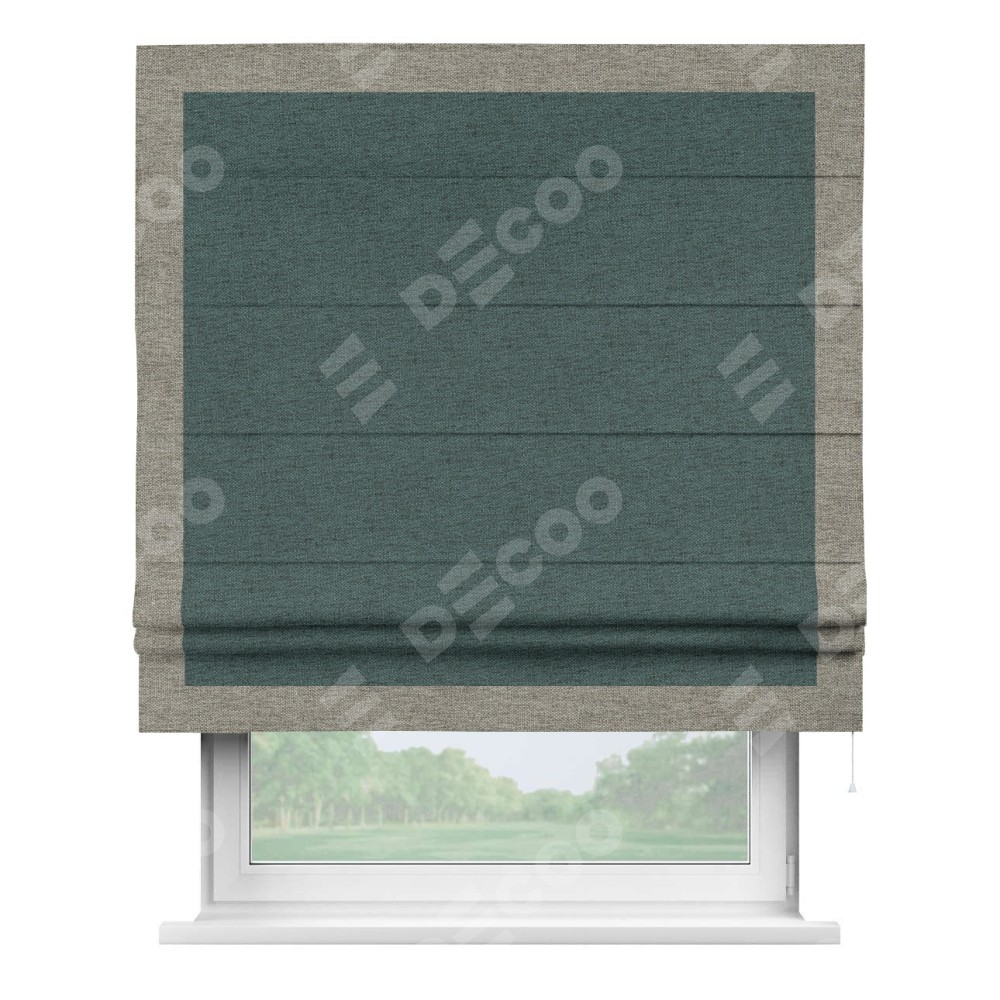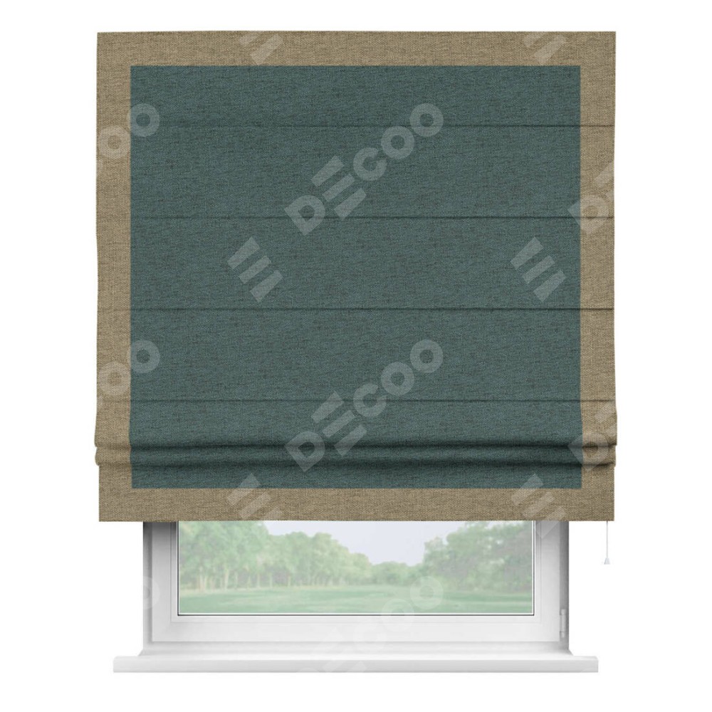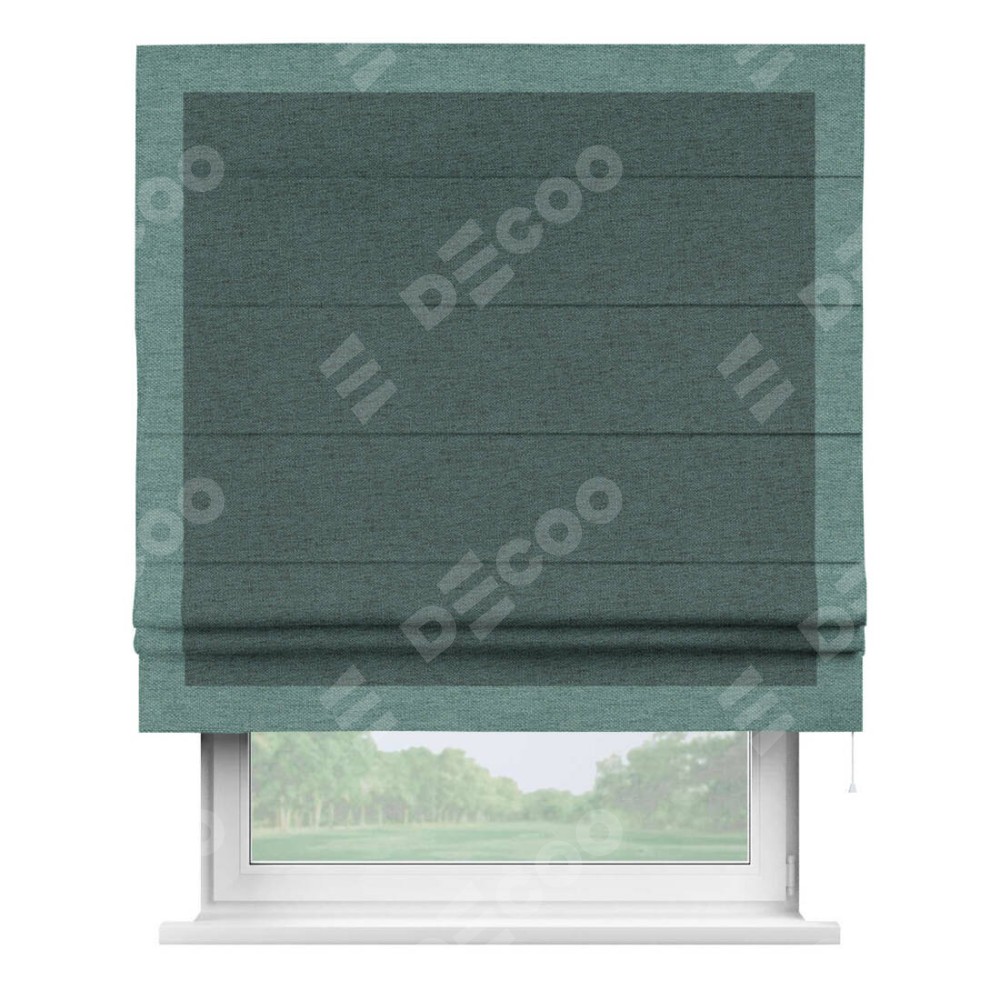 Римская штора «Кортин» с кантом Чесс, для проема, ткань стиф димаут сине-зелёный