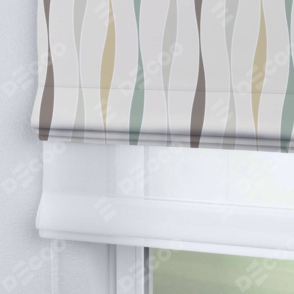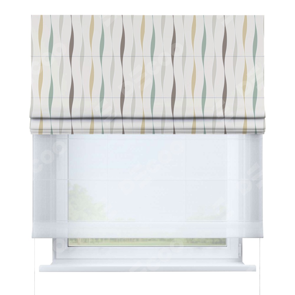 Римская штора день-ночь производителя «Cortin», используется для проёма, пошита из двух полотен, с лицевой блэкаут с нанесением сублимационной печати «Дельта», вторая ткань тюль (по стандарту комплектуется тюль белого цвета артикул V-01). Имеет универсальный механизм и подходит для монтажа: на потолок, на стену и в нишу.