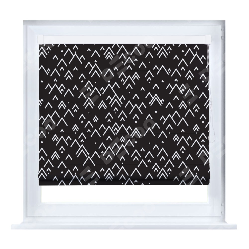 Римская штора производителя «Cortin», устанавливается на створку окна, пошита из ткани блэкаут с нанесением сублимационной печати «Черно-белый минимализм». Штора шьётся по индивидуальным размерам, для данного типа римской шторы возможная ширина от 35 до 150 см., высота до 250 см.