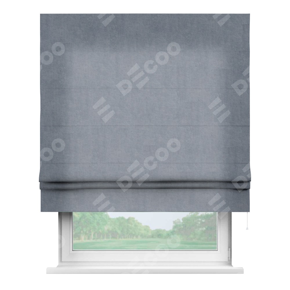 Римская штора производителя «Cortin», используется для проёма, пошита из ткани канвас васильковый, артикул ткани v-203. Имеет универсальный механизм и подходит для монтажа: на потолок, на стену и в нишу.