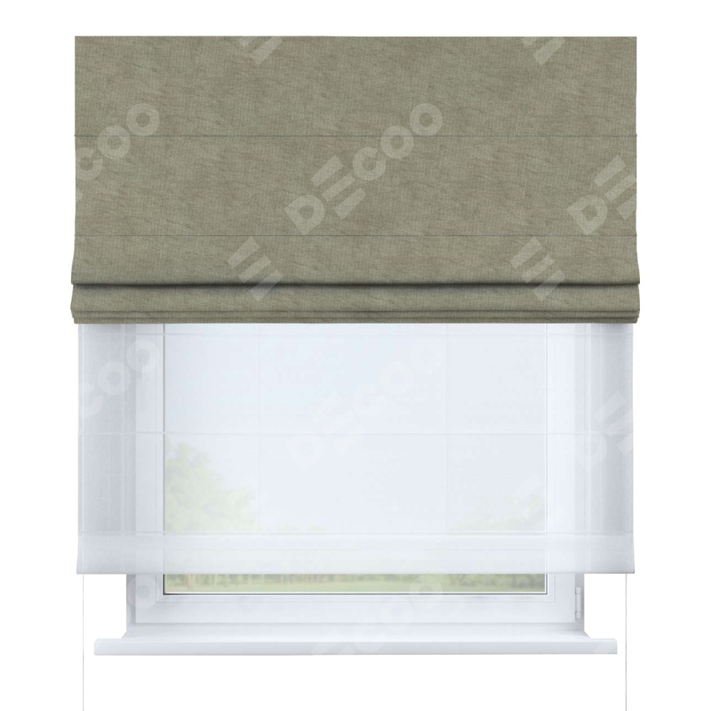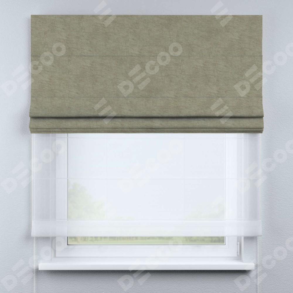 Римская штора день-ночь производителя «Cortin», используется для проёма, пошита из двух полотен, с лицевой стороны канвас капучино артикул v-211, вторая ткань тюль (по стандарту комплектуется тюль белого цвета артикул V-01). Имеет универсальный механизм и подходит для монтажа: на потолок, на стену и в нишу.