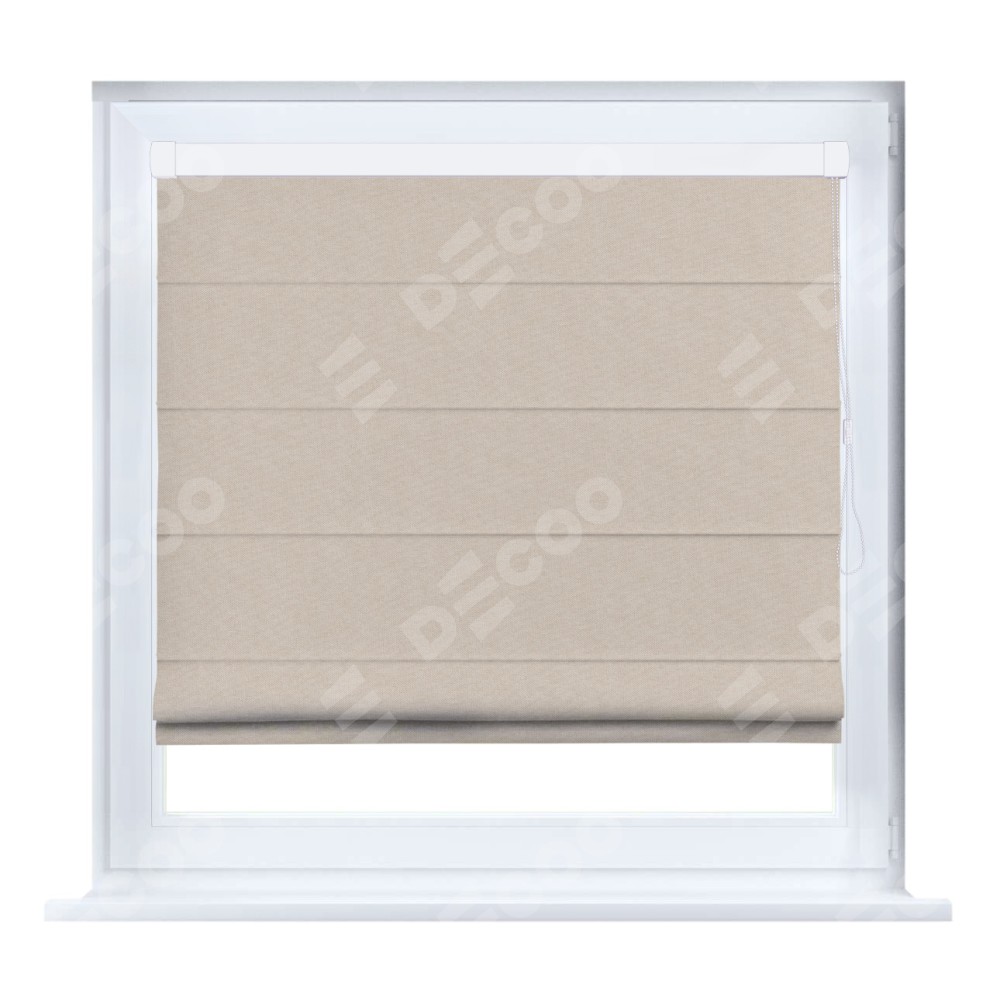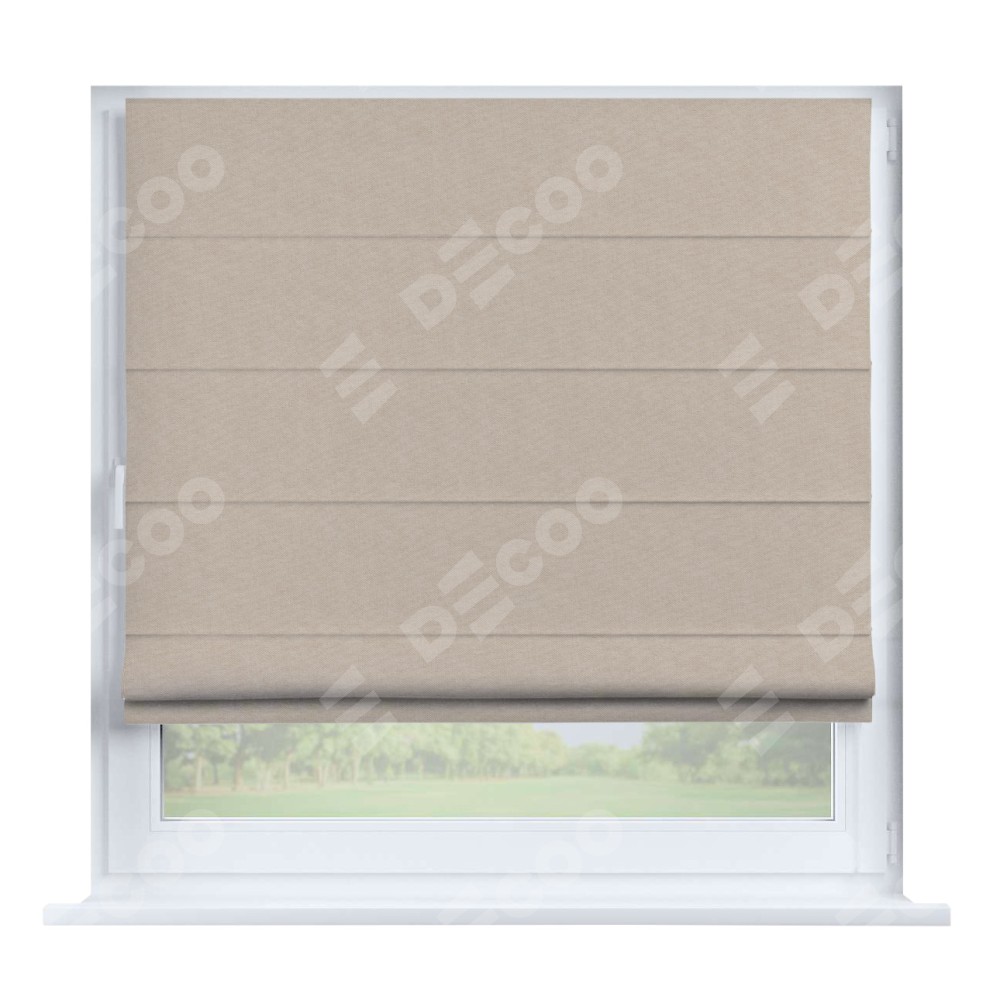 Римская штора производителя «Cortin», устанавливается на створку окна, пошита из ткани канвас кофе с молоком, артикул v-07. Штора шьётся по индивидуальным размерам, для данного типа римской шторы возможная ширина от 35 до 150 см., высота до 250 см.
