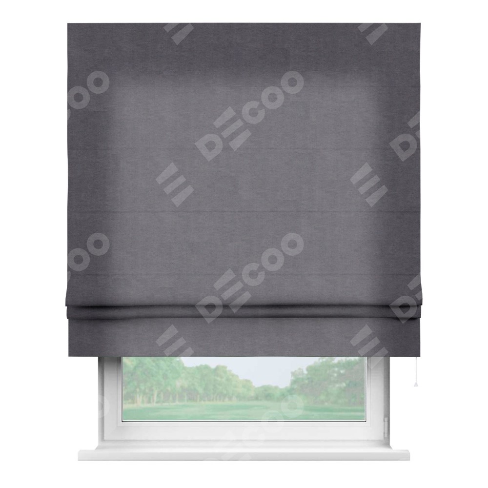 Римская штора производителя «Cortin», используется для проёма, пошита из ткани канвас лавандовый, артикул ткани v-223. Имеет универсальный механизм и подходит для монтажа: на потолок, на стену и в нишу.