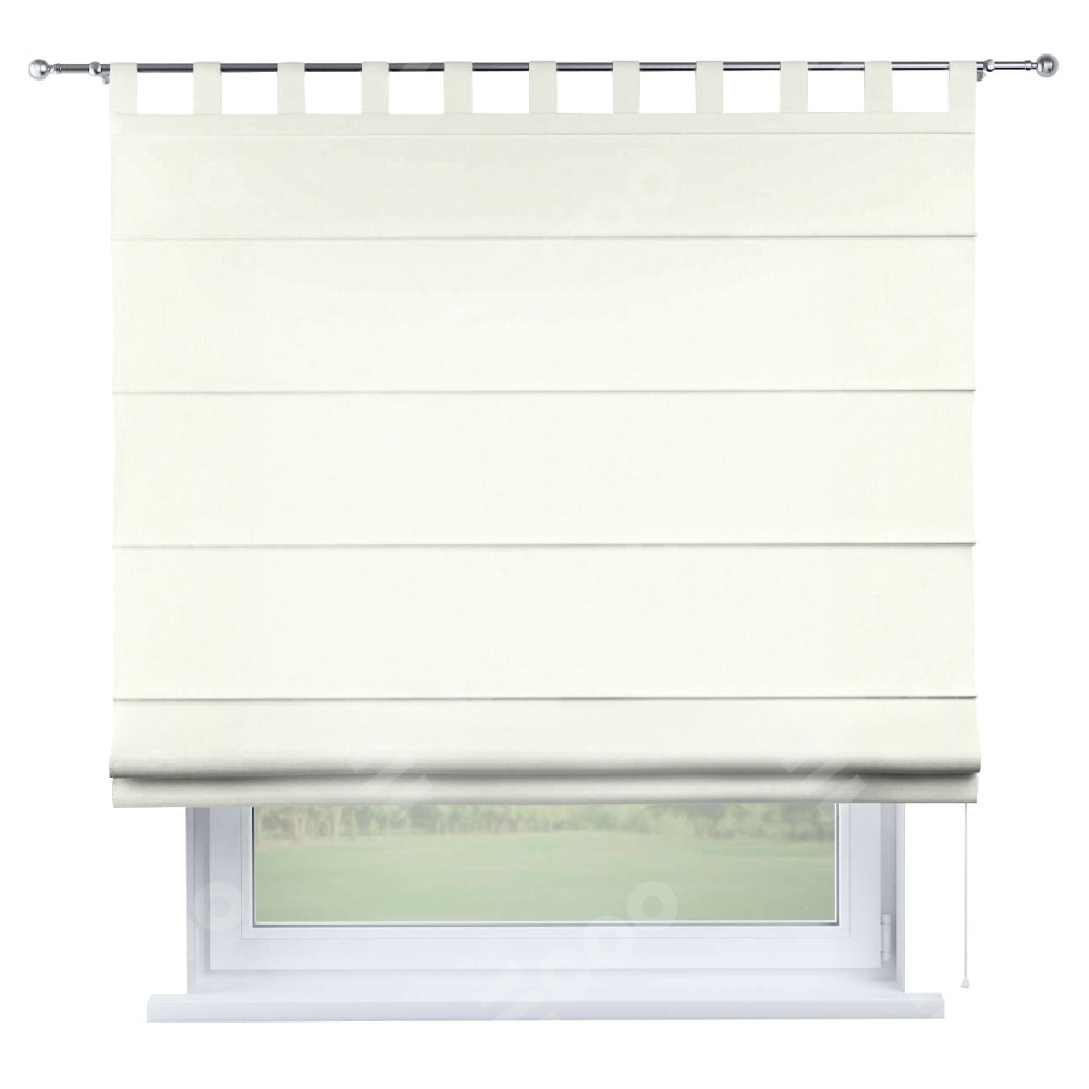 Римская штора производителя «Cortin», используется для проёма, пошита из ткани канвас молочный, артикул ткани v-93. Данная модель пошита на петлях, комплектуется на выбор круглым карнизом и подходит для монтажа на стену. Римская штора на петлях имеет простую систему регулировки высоты, отличительным преимуществом данной модели является простой способ монтажа. Достаточно повесить ее на трубу и штора готова!