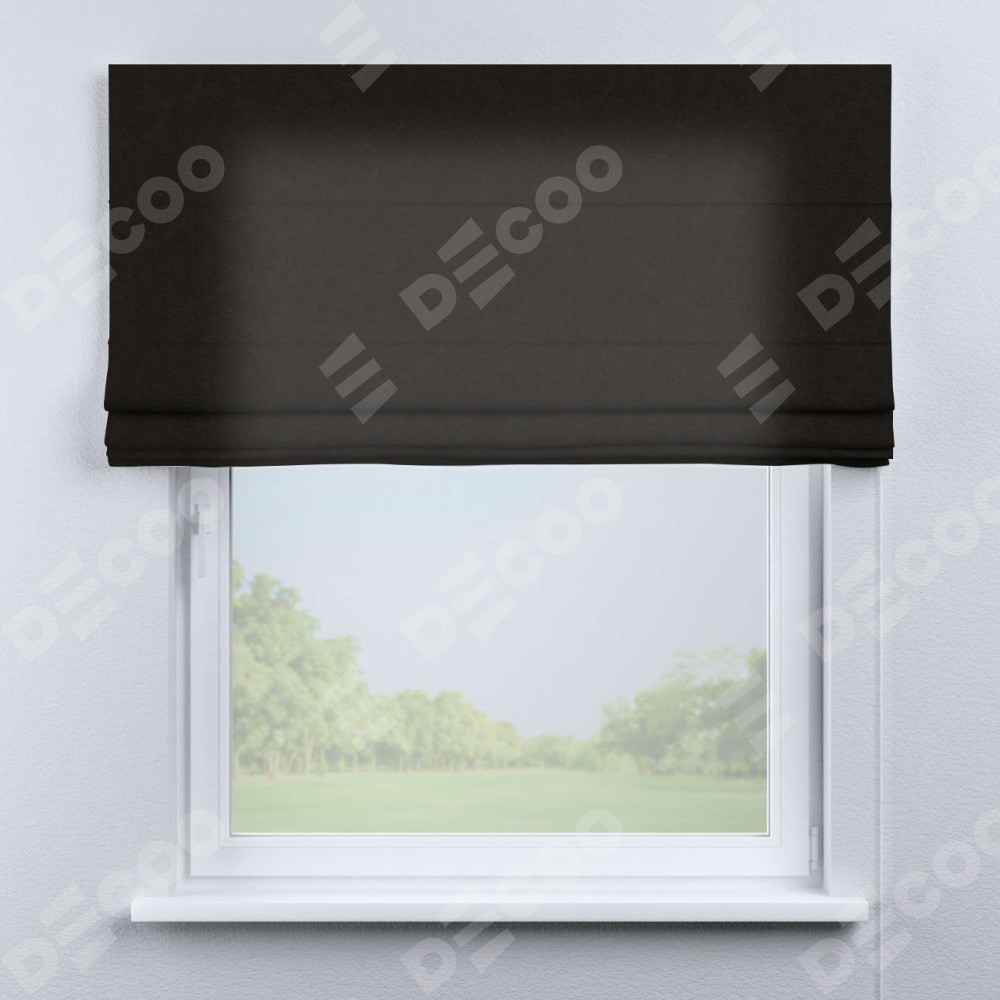 Римская штора производителя «Cortin», используется для проёма, пошита из ткани канвас тёмно-коричневый, артикул ткани v-13. Имеет универсальный механизм и подходит для монтажа: на потолок, на стену и в нишу.