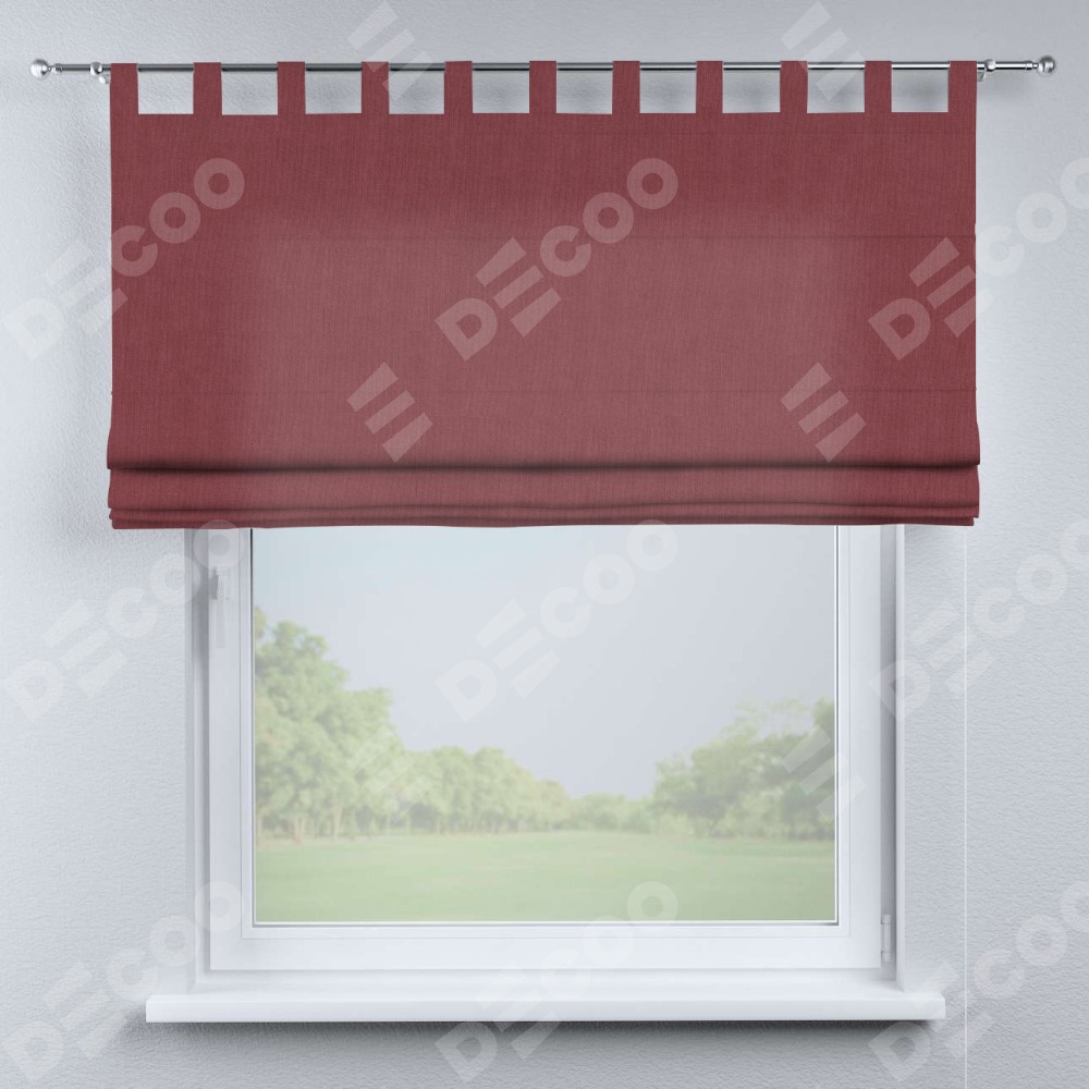 Римская штора производителя «Cortin», используется для проёма, пошита из ткани канвас ягодный, артикул ткани v-28. Данная модель пошита на петлях, комплектуется на выбор круглым карнизом и подходит для монтажа на стену. Римская штора на петлях имеет простую систему регулировки высоты, отличительным преимуществом данной модели является простой способ монтажа. Достаточно повесить ее на трубу и штора готова!