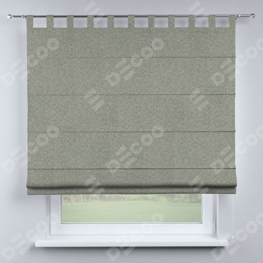 Римская штора производителя «Cortin», используется для проёма, пошита из ткани лён димаут серый, артикул ткани 91009. Данная модель пошита на петлях, комплектуется на выбор круглым карнизом и подходит для монтажа на стену. Римская штора на петлях имеет простую систему регулировки высоты, отличительным преимуществом данной модели является простой способ монтажа. Достаточно повесить ее на трубу и штора готова!