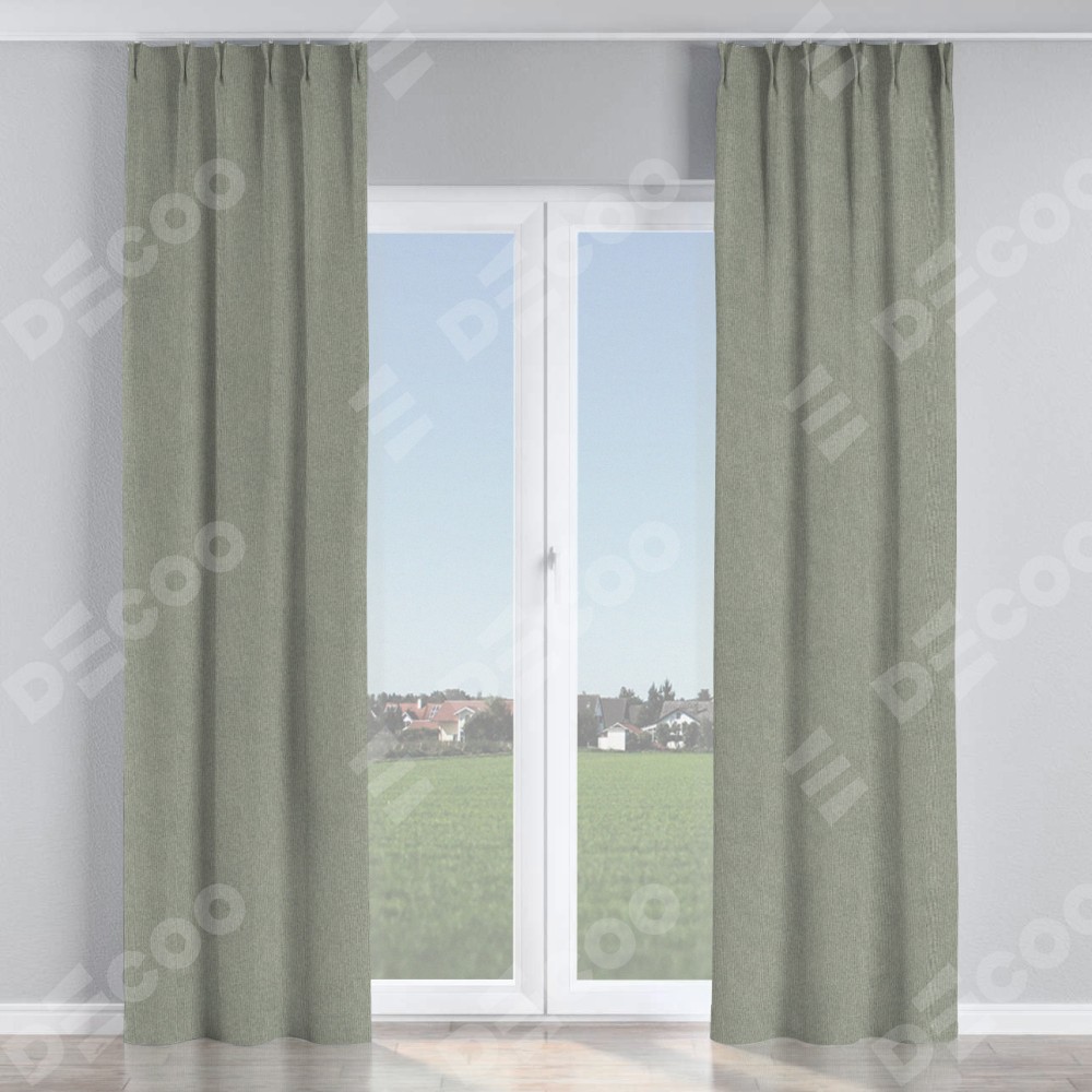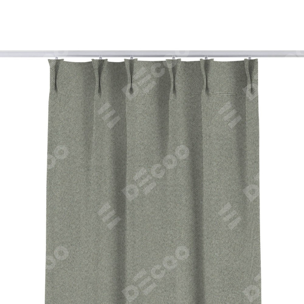 Комплект прямых штор, от производителя «Cortin», пошиты из ткани лён димаут серый, артикул ткани 91009. С изнаночной стороны в верхней части штор пристрачивается шторная лента с декоративными складками «Кустик». Для создания элегантных складок прямые шторы шьются по стандарту с коэффициентом 1:2 (на 100 см. ширины проёма 200 см. ширины ткани).