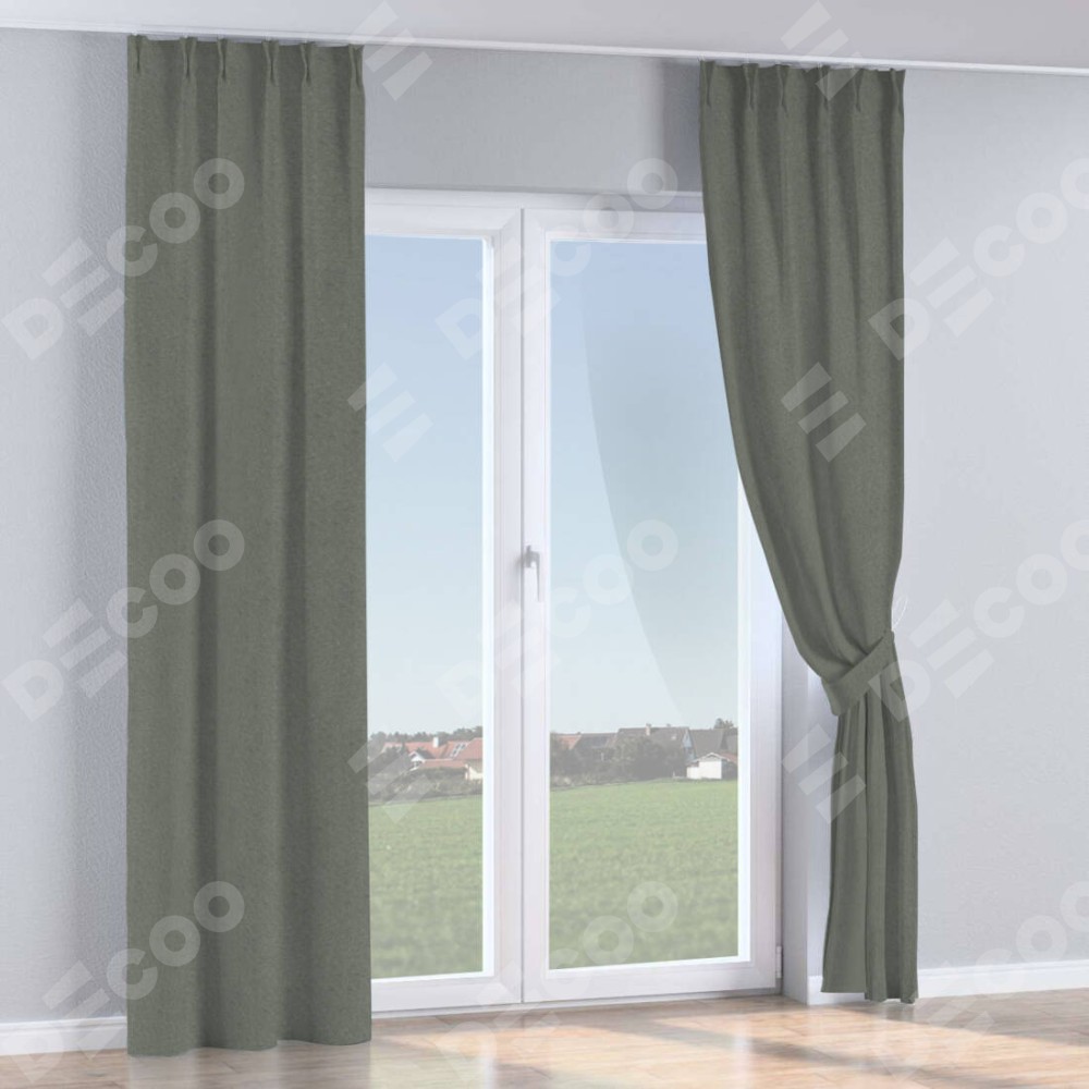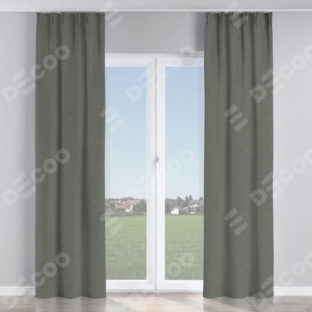 Комплект прямых штор, от производителя «Cortin», пошиты из ткани лён димаут тёмно-серый, артикул ткани 91011. С изнаночной стороны в верхней части штор пристрачивается шторная лента с декоративными складками «Кустик». Для создания элегантных складок прямые шторы шьются по стандарту с коэффициентом 1:2 (на 100 см. ширины проёма 200 см. ширины ткани).