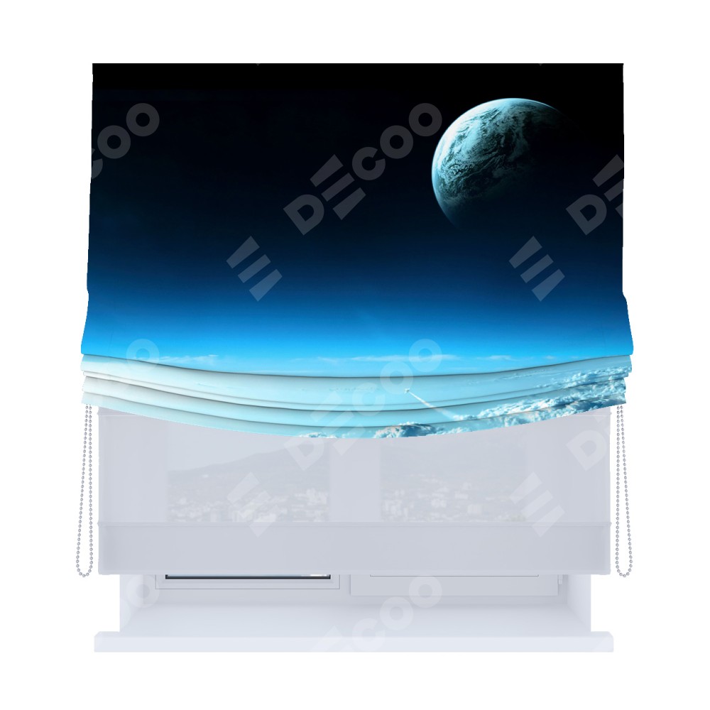 Римская штора «Кортин», день-ночь с мягкими складками, «Горизонты вселенной»