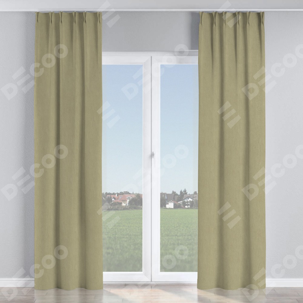 Комплект прямых штор, от производителя «Cortin», пошиты из ткани канвас латте, артикул ткани v-12490. С изнаночной стороны в верхней части штор пристрачивается шторная лента с декоративными складками «Кустик». Для создания элегантных складок прямые шторы шьются по стандарту с коэффициентом 1:2 (на 100 см. ширины проёма 200 см. ширины ткани).