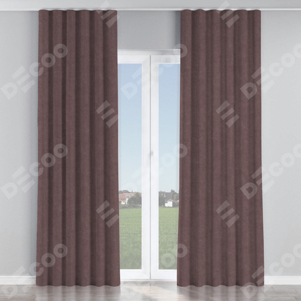 Комплект прямых штор, от производителя «Cortin», пошиты из ткани канвас махагон, артикул ткани v-37. С изнаночной стороны в верхней части штор пристрачивается шторная лента с декоративными складками «Волна». Для создания элегантных складок прямые шторы шьются по стандарту с коэффициентом 1:2 (на 100 см. ширины проёма 200 см. ширины ткани).