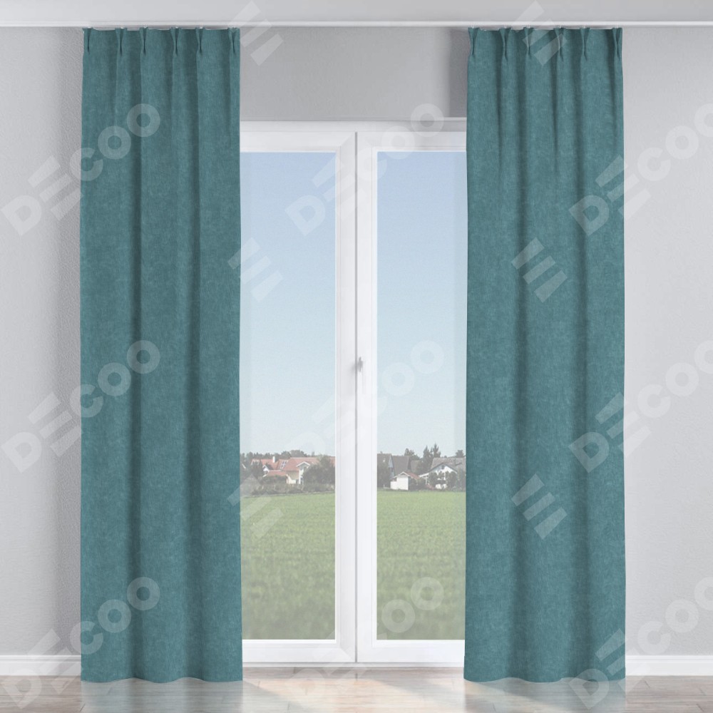 Комплект прямых штор, от производителя «Cortin», пошиты из ткани канвас серо-голубой, артикул ткани v-330. С изнаночной стороны в верхней части штор пристрачивается шторная лента с декоративными складками «Кустик». Для создания элегантных складок прямые шторы шьются по стандарту с коэффициентом 1:2 (на 100 см. ширины проёма 200 см. ширины ткани).