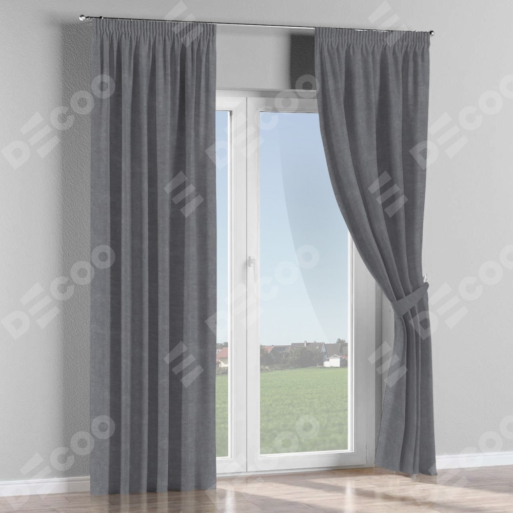 Комплект прямых штор, от производителя «Cortin», пошиты из ткани канвас стальной, артикул ткани v-1082. С изнаночной стороны в верхней части штор пристрачивается шторная лента с декоративными складками «Карандаш». Для создания элегантных складок прямые шторы шьются по стандарту с коэффициентом 1:2 (на 100 см. ширины проёма 200 см. ширины ткани).