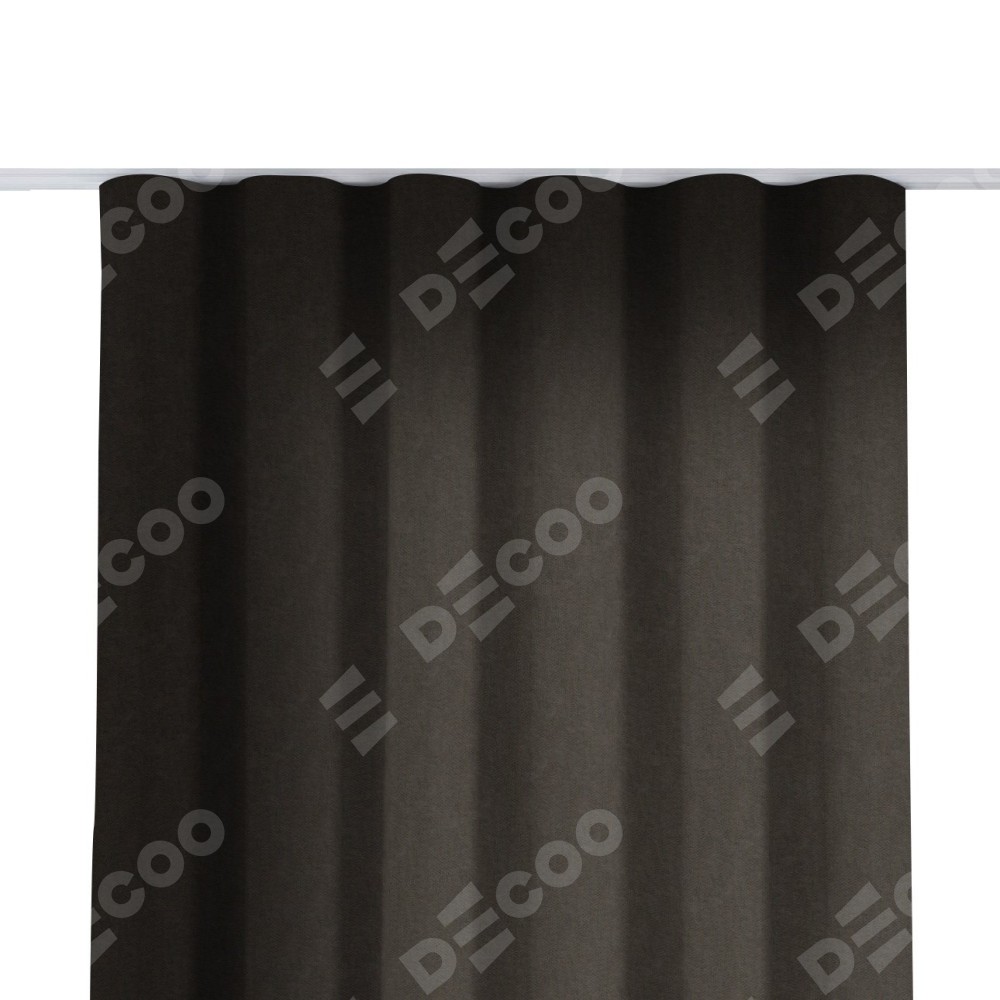 Комплект прямых штор, от производителя «Cortin», пошиты из ткани канвас тёмно-коричневый, артикул ткани v-13. С изнаночной стороны в верхней части штор пристрачивается шторная лента с декоративными складками «Волна». Для создания элегантных складок прямые шторы шьются по стандарту с коэффициентом 1:2 (на 100 см. ширины проёма 200 см. ширины ткани).