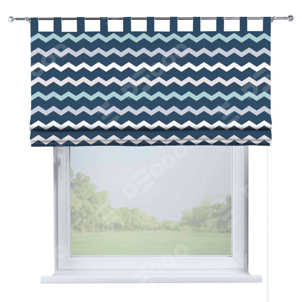 Римская штора производителя «Cortin», используется для проёма, пошита из ткани блэкаут с нанесением сублимационной печати «Морской шеврон». Данная модель пошита на петлях, комплектуется на выбор круглым карнизом и подходит для монтажа на стену. Римская штора на петлях имеет простую систему регулировки высоты, отличительным преимуществом данной модели является простой способ монтажа. Достаточно повесить ее на трубу и штора готова!