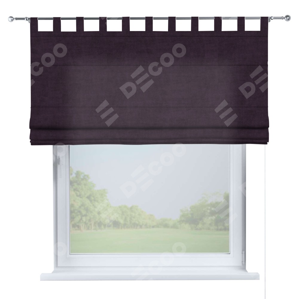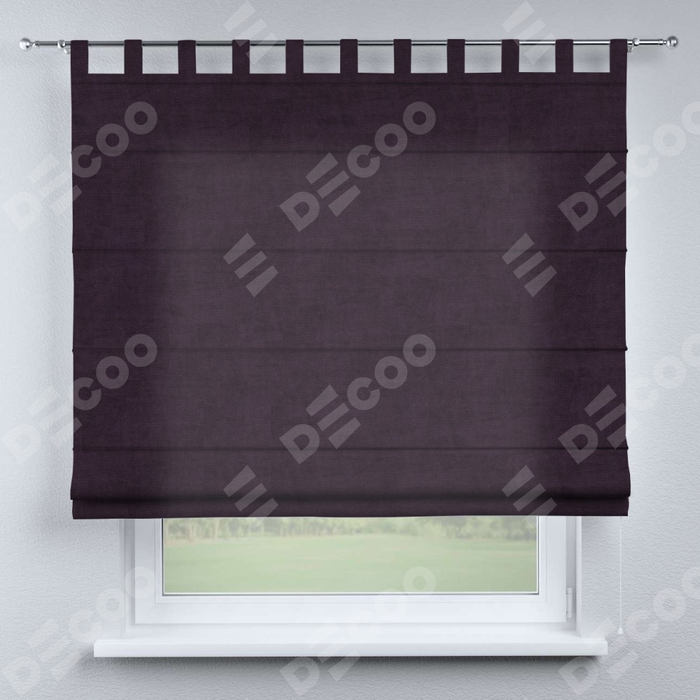 Римская штора производителя «Cortin», используется для проёма, пошита из ткани вельвет тёмно-фиолетовый, артикул ткани 72403. Данная модель пошита на петлях, комплектуется на выбор круглым карнизом и подходит для монтажа на стену. Римская штора на петлях имеет простую систему регулировки высоты, отличительным преимуществом данной модели является простой способ монтажа. Достаточно повесить ее на трубу и штора готова!
