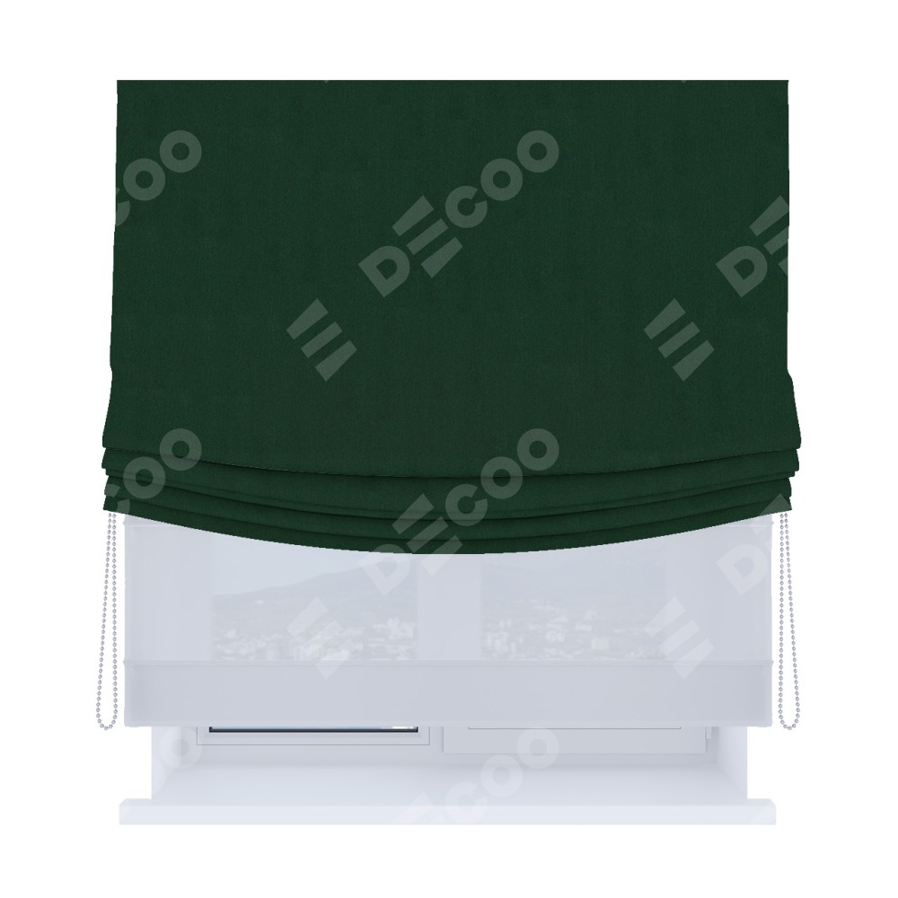 Римская штора день-ночь производителя «Cortin», используется для проёма, пошита из двух полотен, с лицевой стороны блэкаут однотонный зелёный артикул 91572−2, вторая ткань тюль (по стандарту комплектуется тюль белого цвета артикул V-01). Имеет универсальный механизм и подходит для монтажа: на потолок, на стену и в нишу. Удобное управление каждой шторой отдельно.