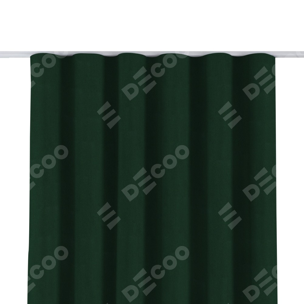 Комплект прямых штор, от производителя «Cortin», пошиты из ткани блэкаут однотонный зелёный, артикул ткани 91572−2. С изнаночной стороны в верхней части штор пристрачивается шторная лента с декоративными складками «Волна». Для создания элегантных складок прямые шторы шьются по стандарту с коэффициентом 1:2 (на 100 см. ширины проёма 200 см. ширины ткани).