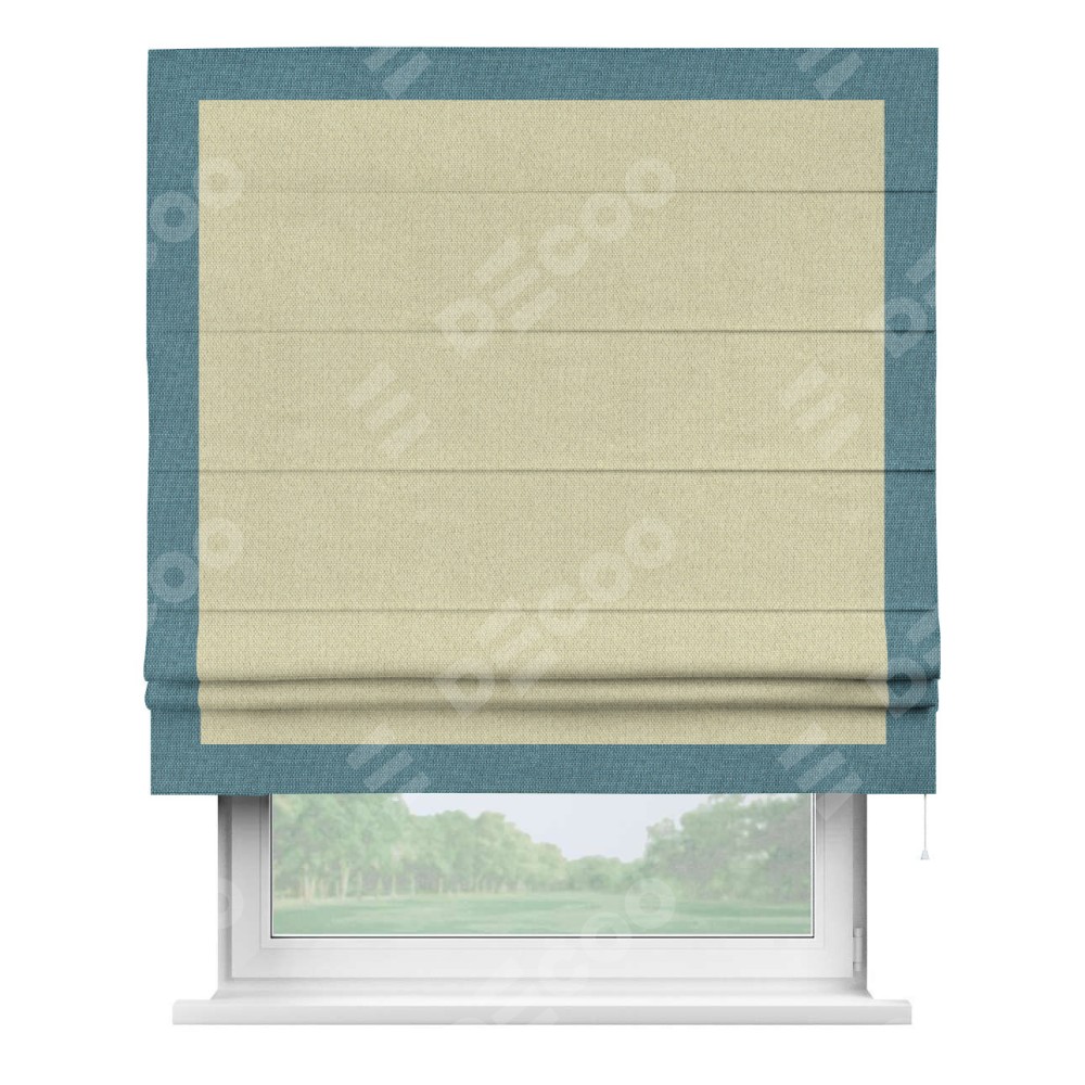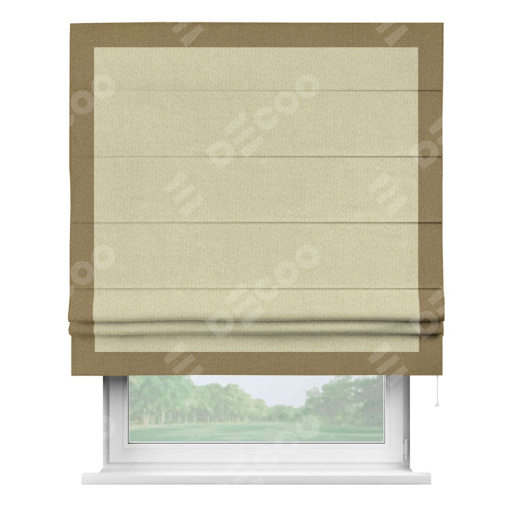 Римская штора «Кортин» с кантом Чесс, для проема, ткань лён димаут, шампань