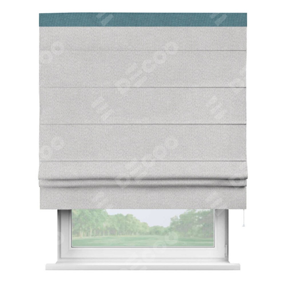 Римская штора производителя «Cortin», используется для проёма, пошита из ткани лён димаут светло-бежевый, артикул 90993. Отделка шторы кантом «Кинг», ткань для канта используется из льна димаут разной расцветки на выбор. Имеет универсальный механизм и подходит для монтажа: на потолок, на стену и в нишу.